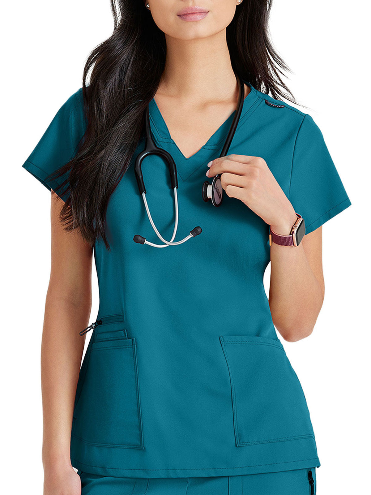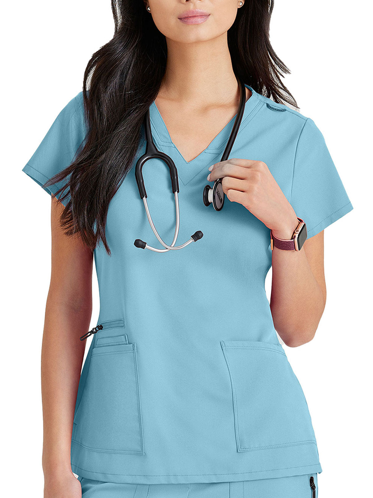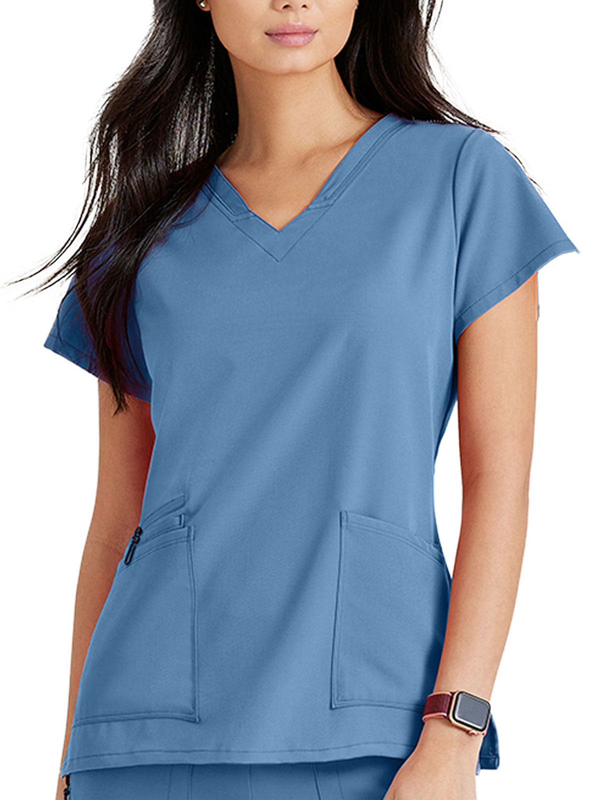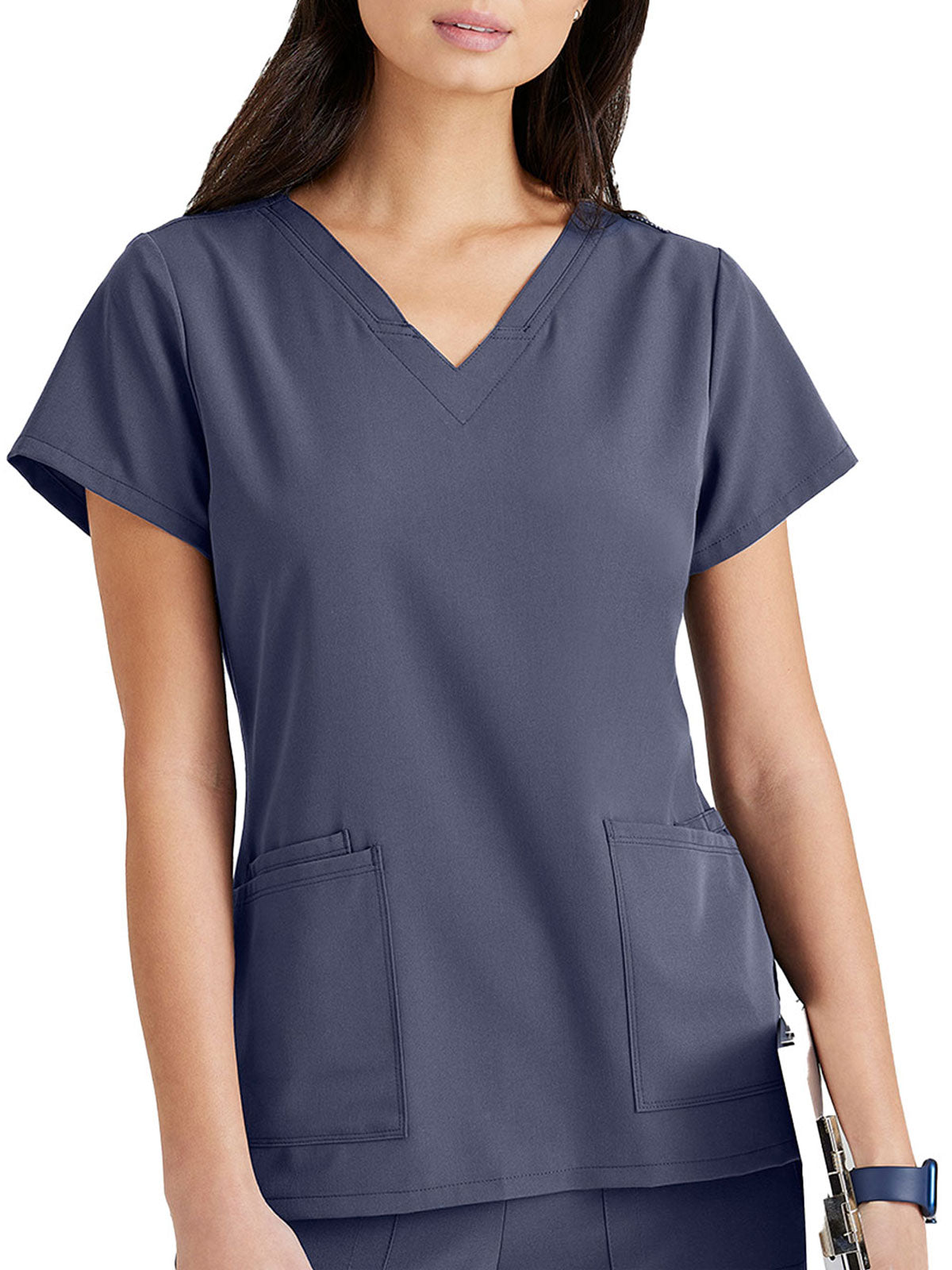 Clean and effortless, Barco Unify women's tops are crafted from our premium Luxe360 fabric. Our stretch twill has enough body for all the beautifully tailored details, but with a soft, supple drape and 4-way stretch that moves with you. This basic V-neckline is the top that you'll want to wear everyday.