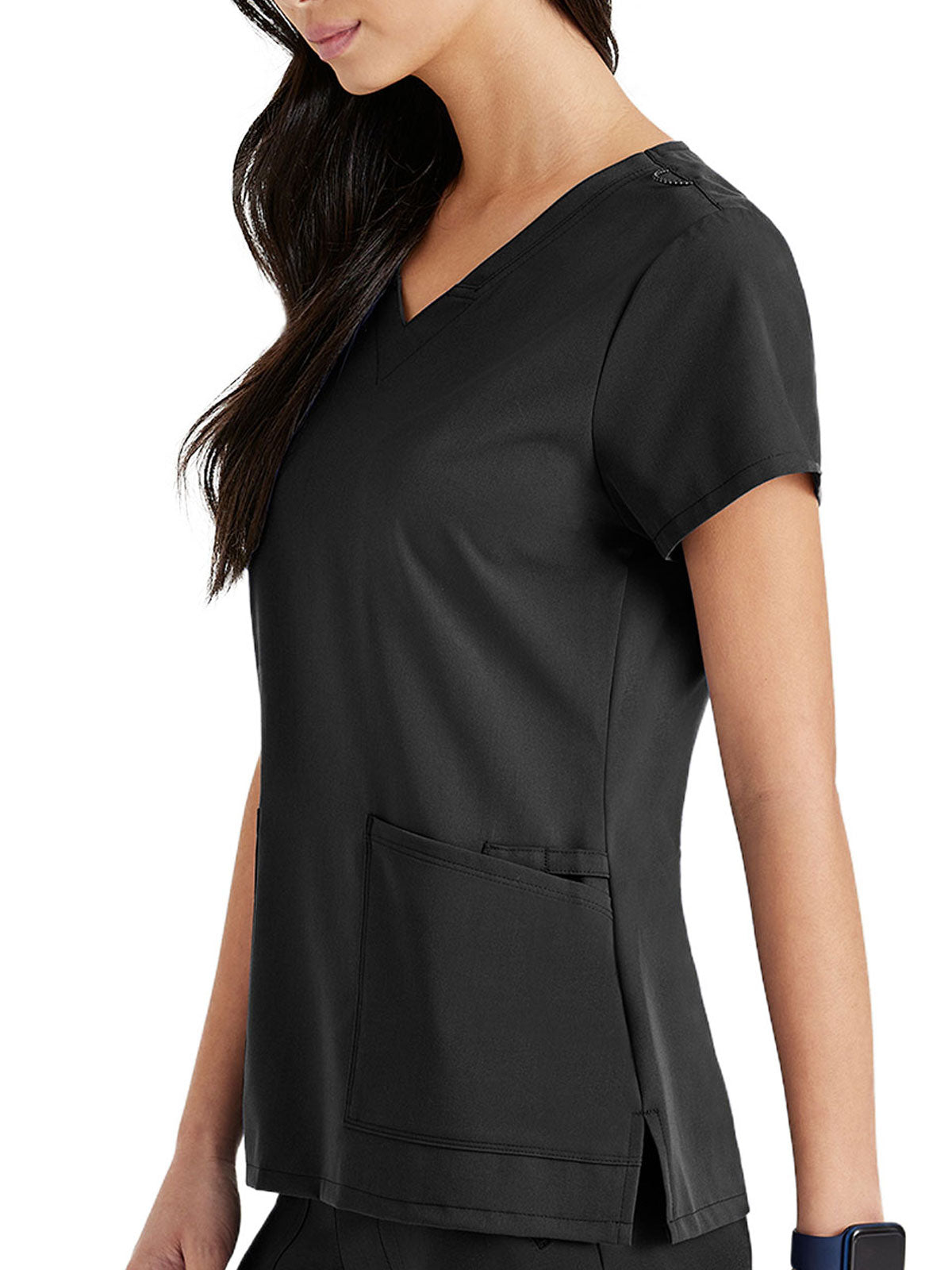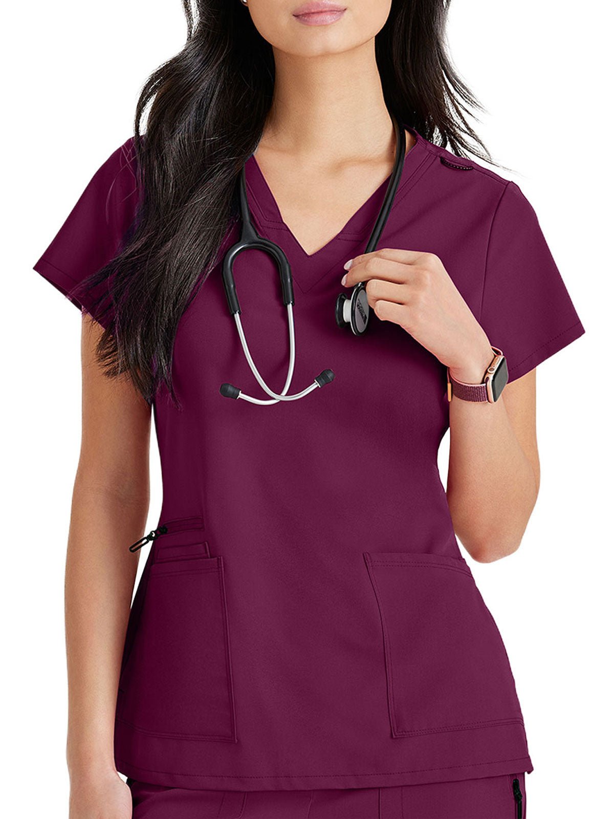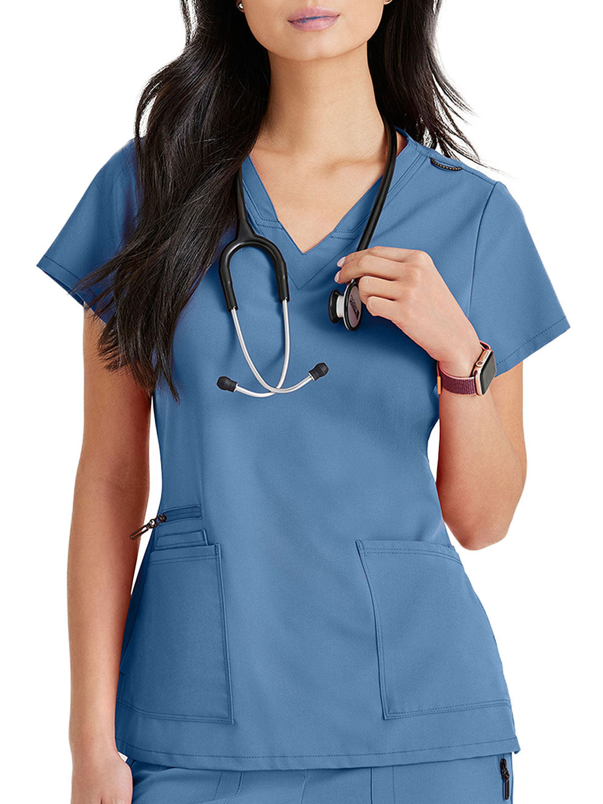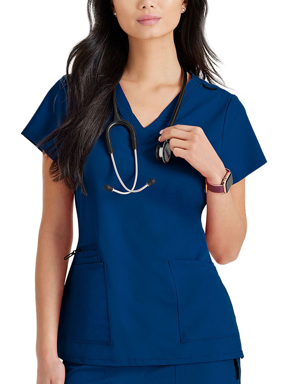 Clean and effortless, Barco Unify women's tops are crafted from our premium Luxe360 fabric. Our stretch twill has enough body for all the beautifully tailored details, but with a soft, supple drape and 4-way stretch that moves with you. This basic V-neckline is the top that you'll want to wear everyday.