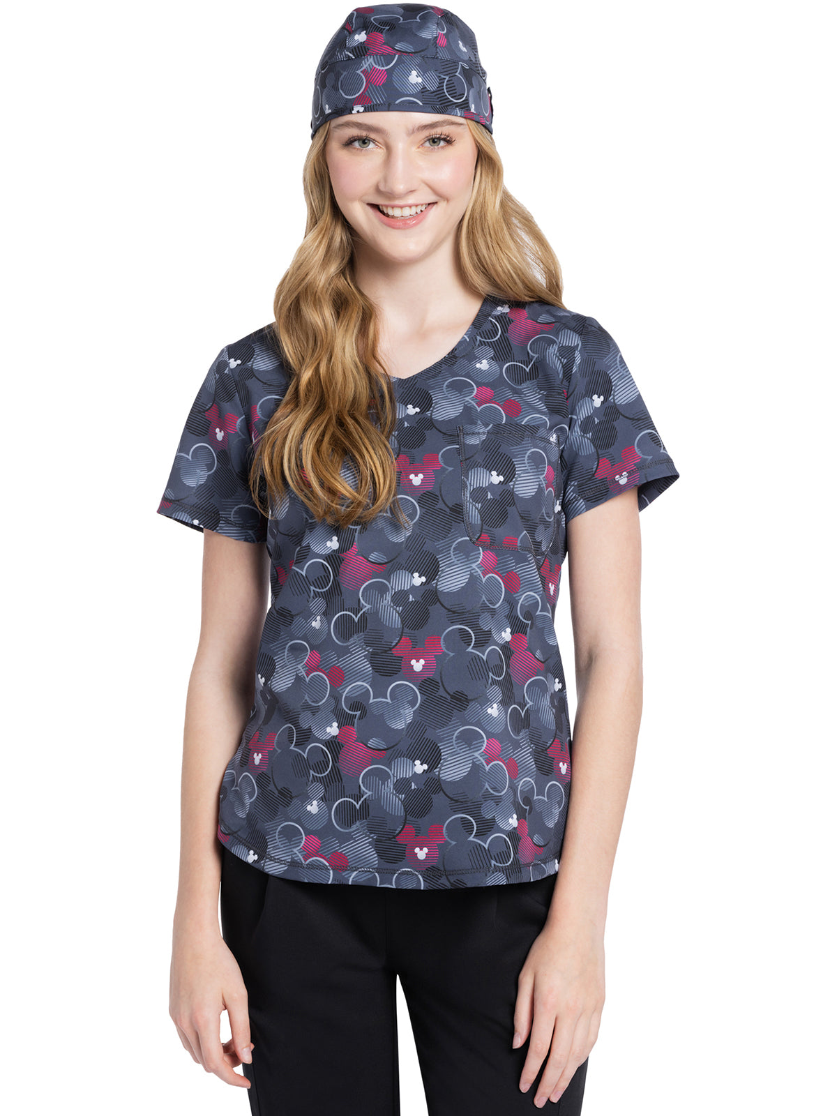 This print scrubs hat features snap tabs by ears to comfortably hold a protective face mask in place. (Mask sold separately.) Hat includes terry-cloth sweatband for comfort and contoured seaming with back elastic and adjustable tie for a better fit. Unise
