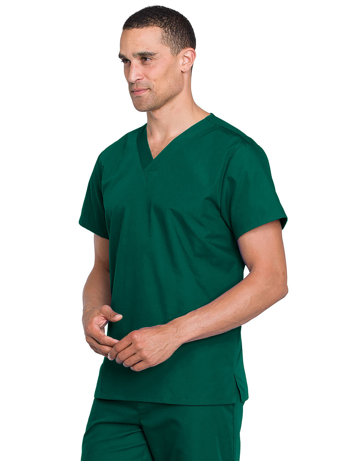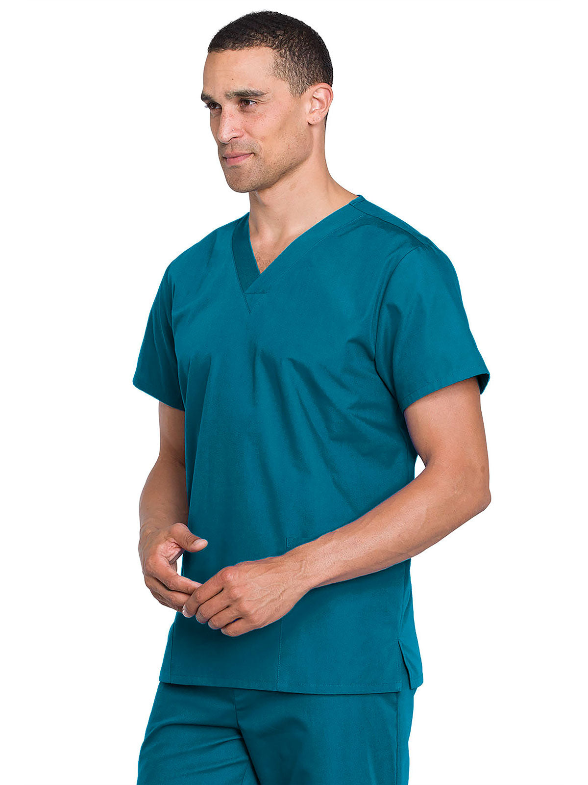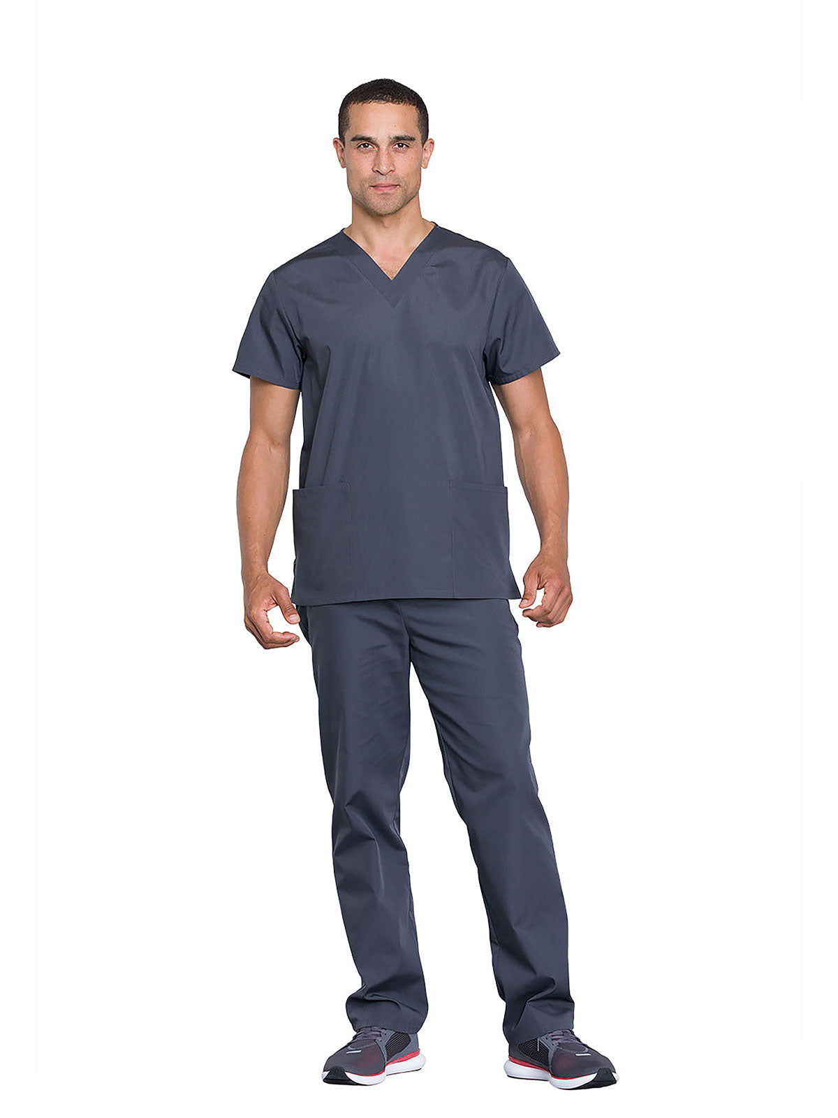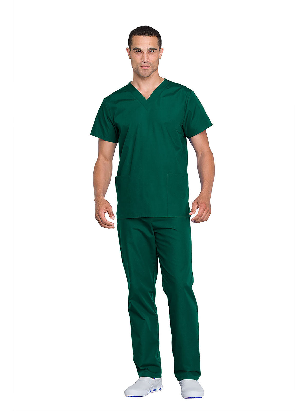 Our Unisex Modern fit top and pant set is a comfortable medical workwear staple, featuring a relaxed fit in both the V-neck top and pull-on drawstring pant, and multiple patch pockets for all your storage needs. Unisex fit. Top center back length: 28 1/2". Leg Opening 18". Inseam: 31"