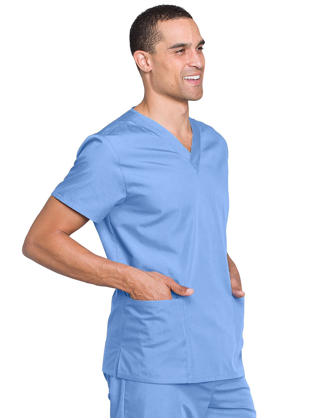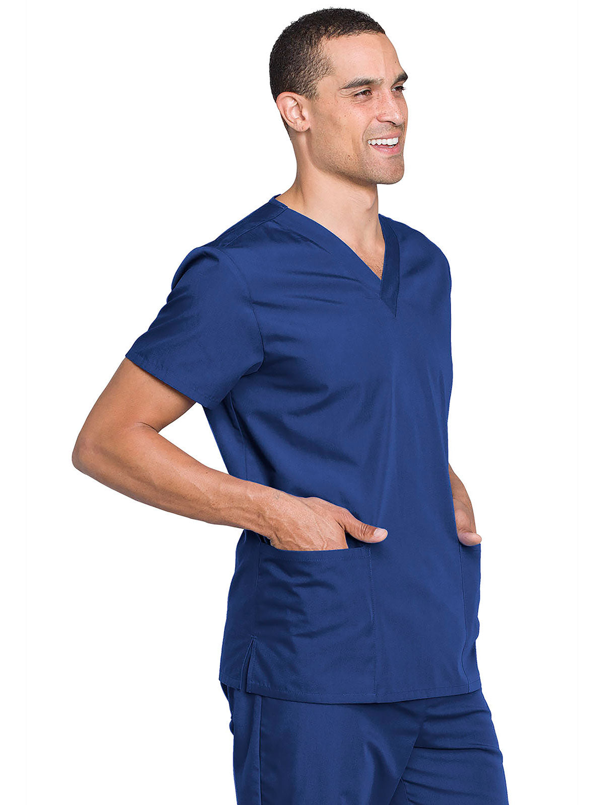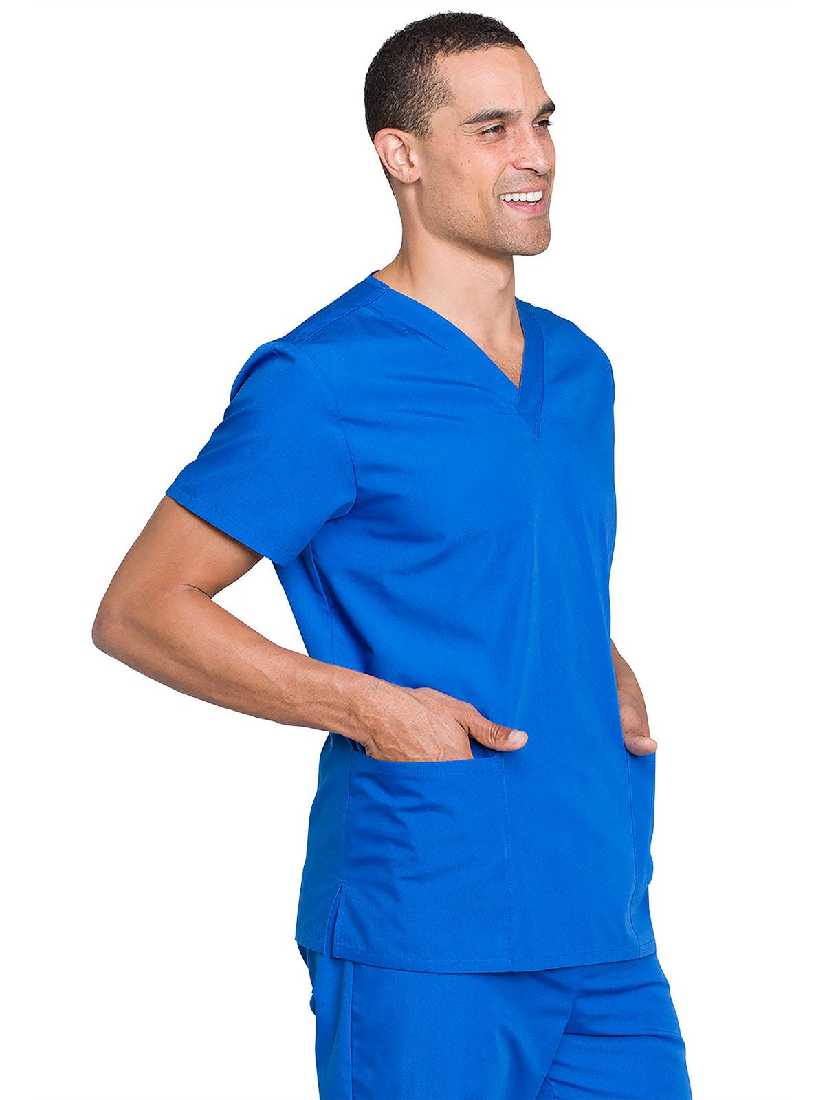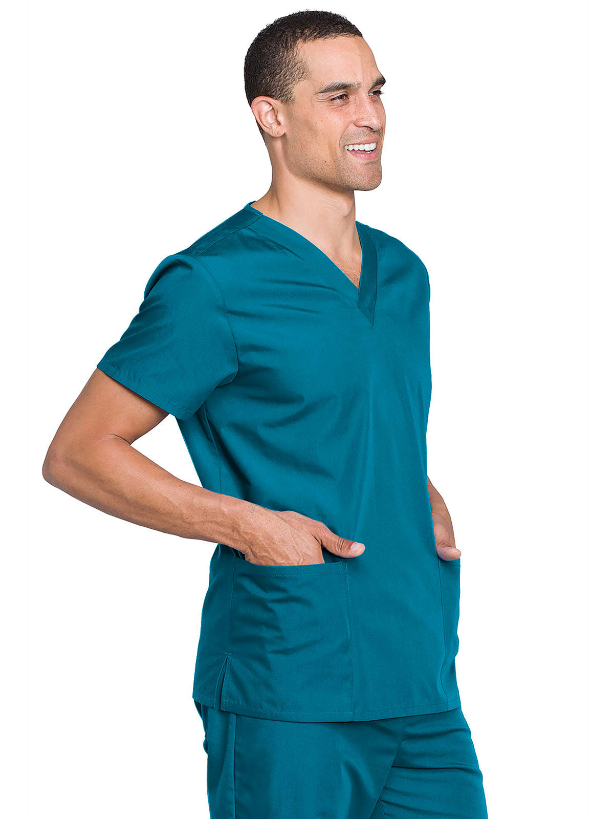 Our Unisex Modern fit top and pant set is a comfortable medical workwear staple, featuring a relaxed fit in both the V-neck top and pull-on drawstring pant, and multiple patch pockets for all your storage needs. Unisex fit. Top center back length: 28 1/2". Leg Opening 18". Inseam: 31"