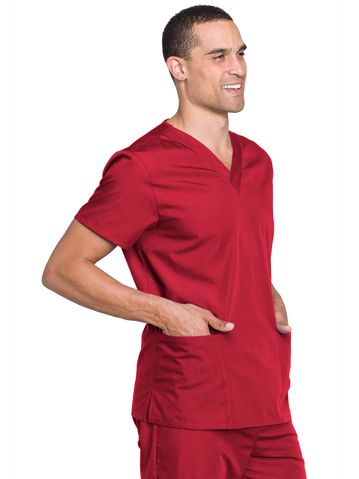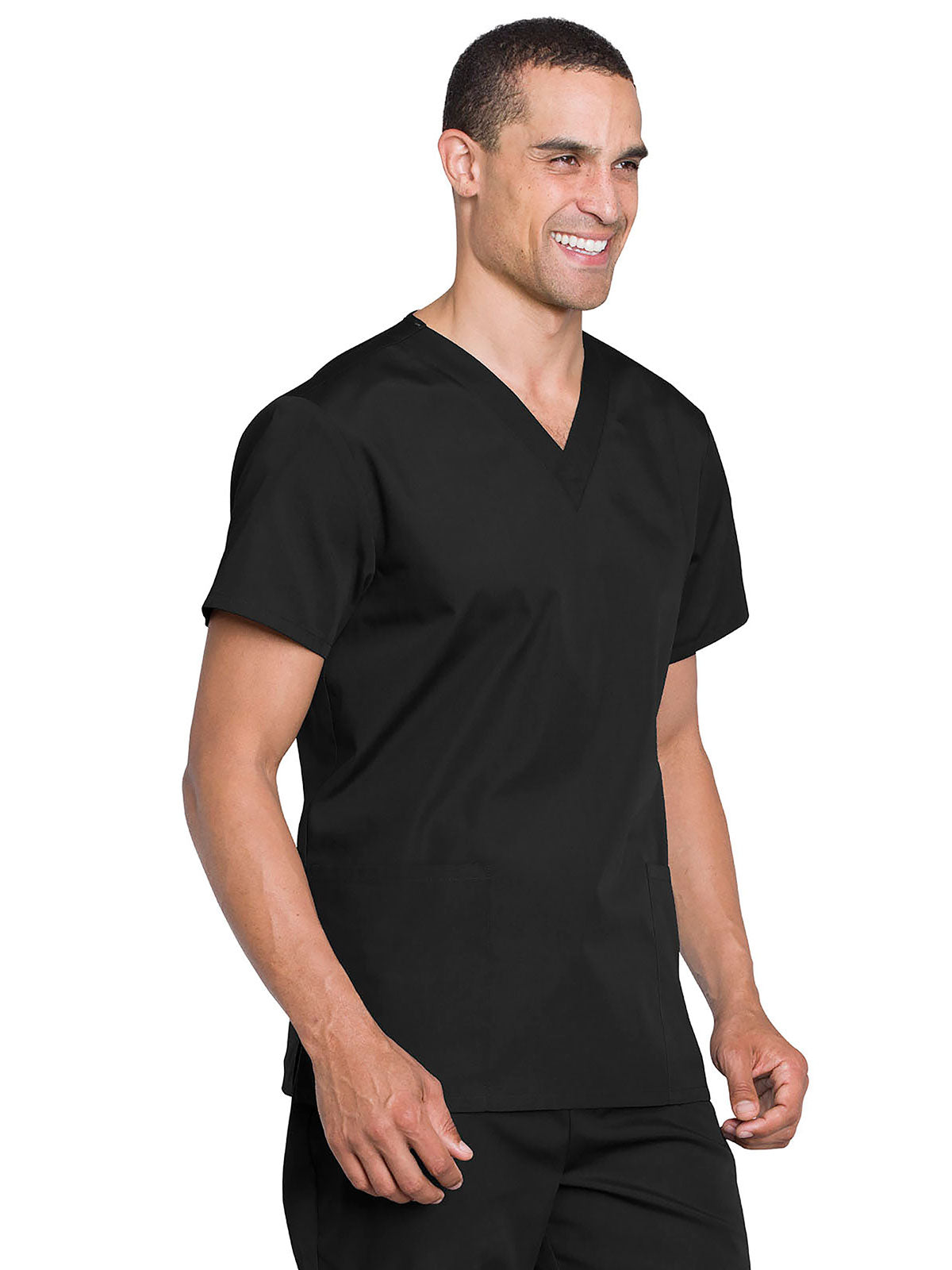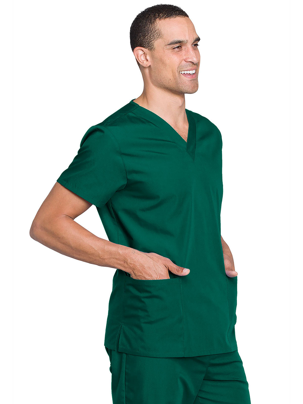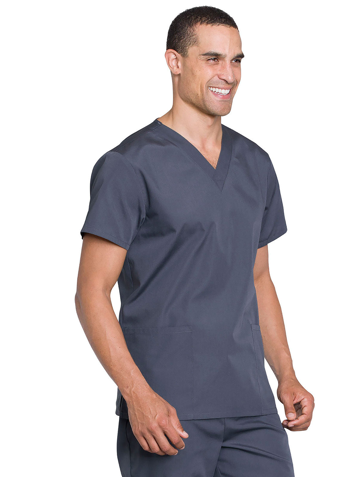 Our Unisex Modern fit top and pant set is a comfortable medical workwear staple, featuring a relaxed fit in both the V-neck top and pull-on drawstring pant, and multiple patch pockets for all your storage needs. Unisex fit. Top center back length: 28 1/2". Leg Opening 18". Inseam: 31"