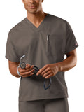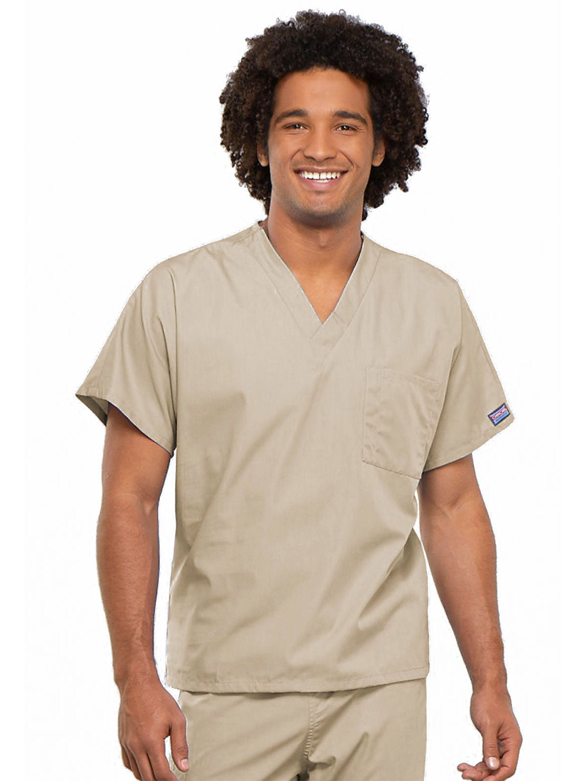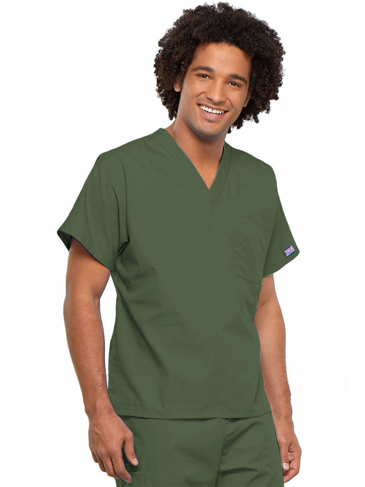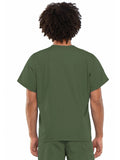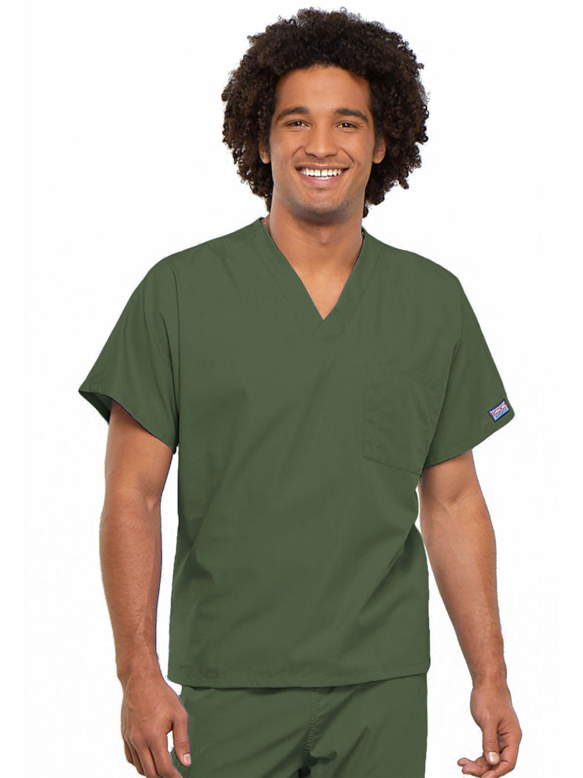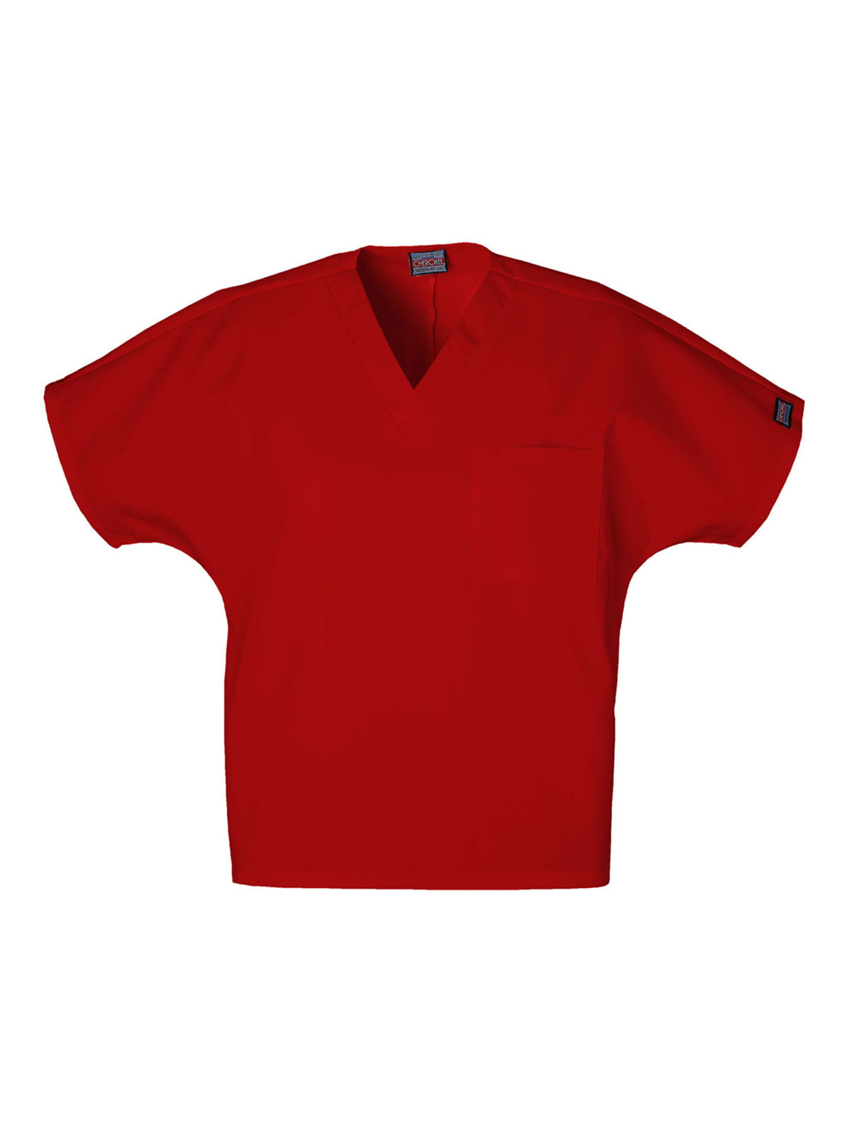 A dolman sleeve, V-neck Unisex Traditional fit tunic has a chest pocket with a pencil slot. This style looks great tucked in or untucked. Center back length 27.5"