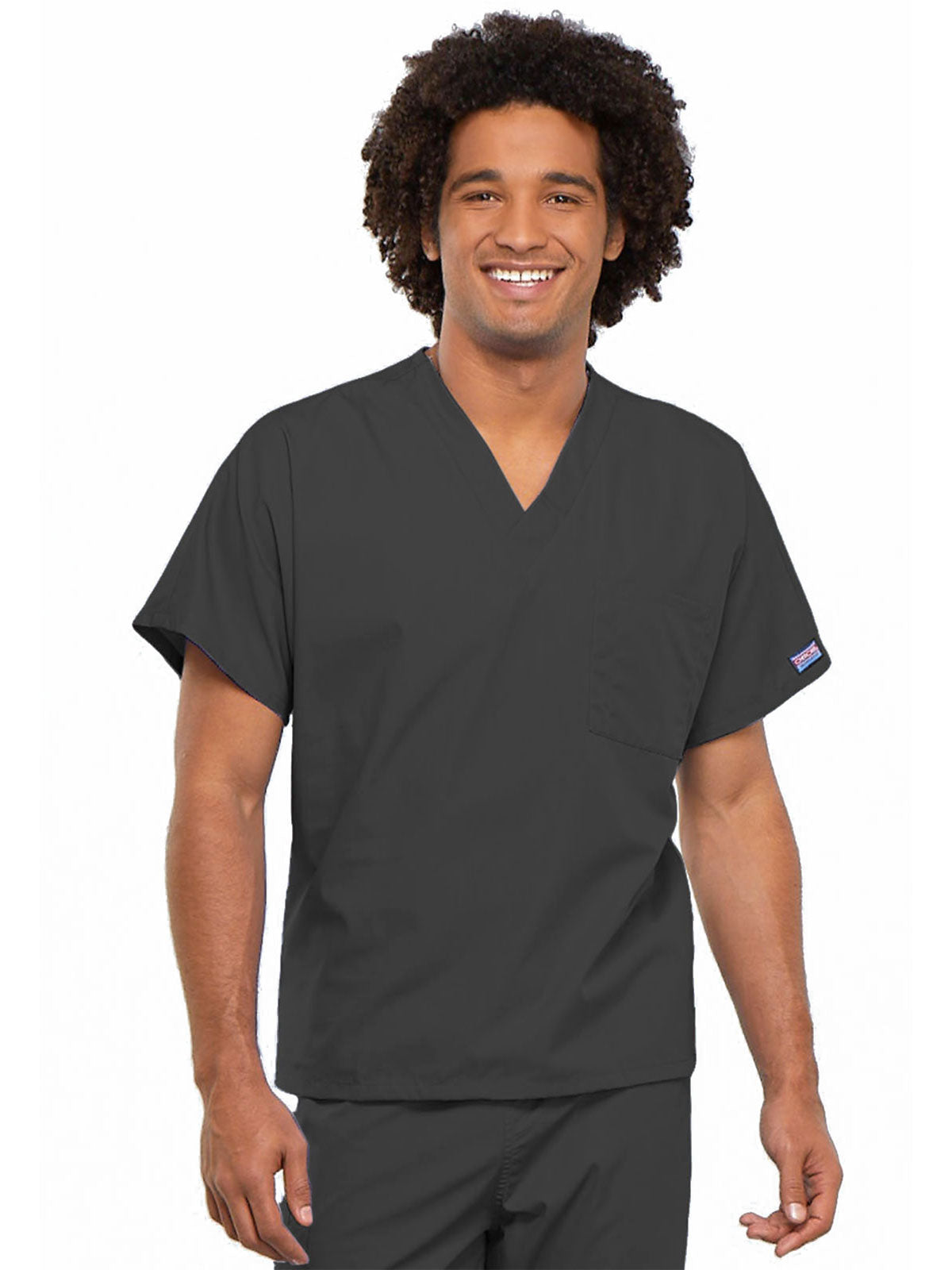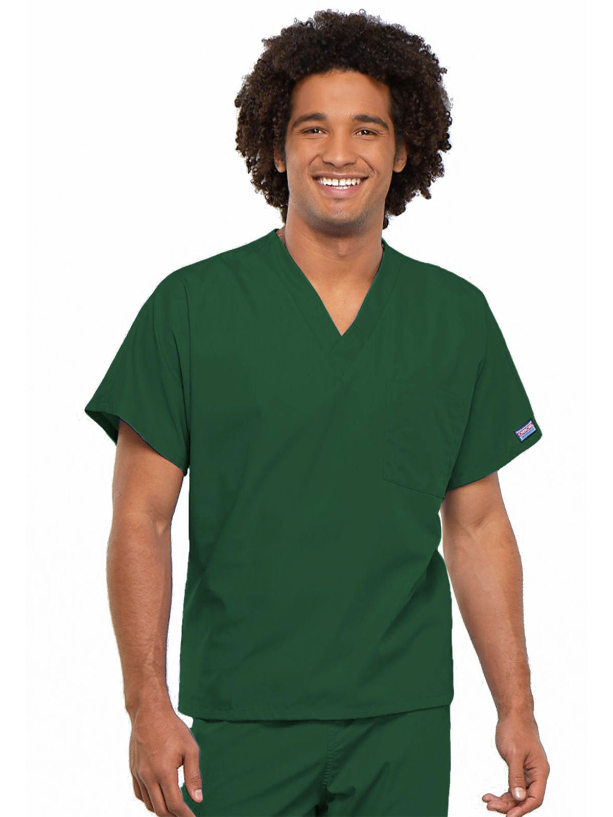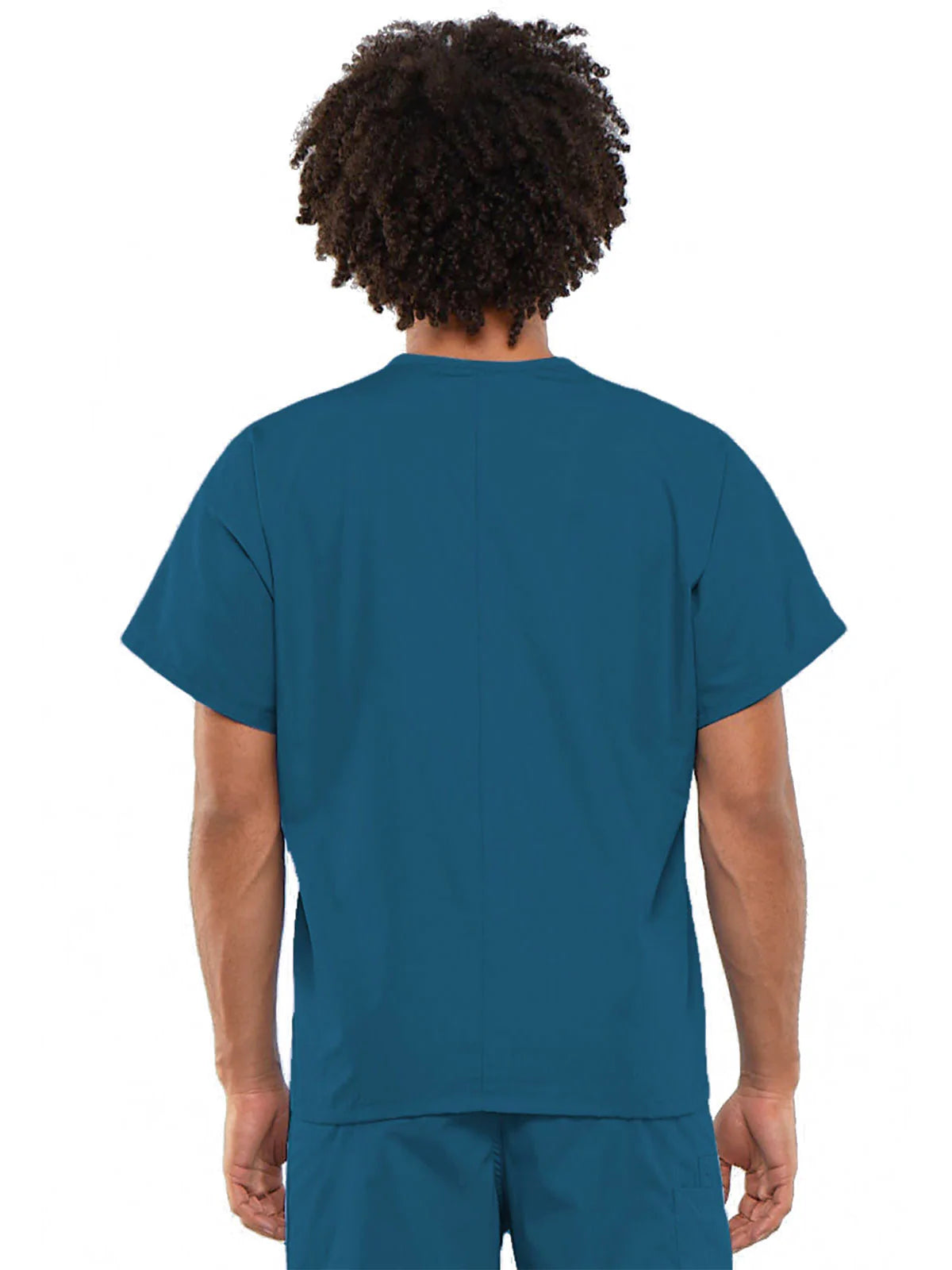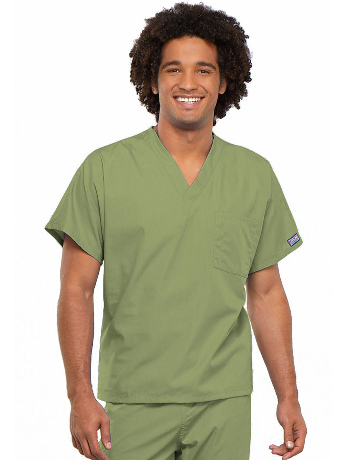 A dolman sleeve, V-neck Unisex Traditional fit tunic has a chest pocket with a pencil slot. This style looks great tucked in or untucked. Center back length 27.5"