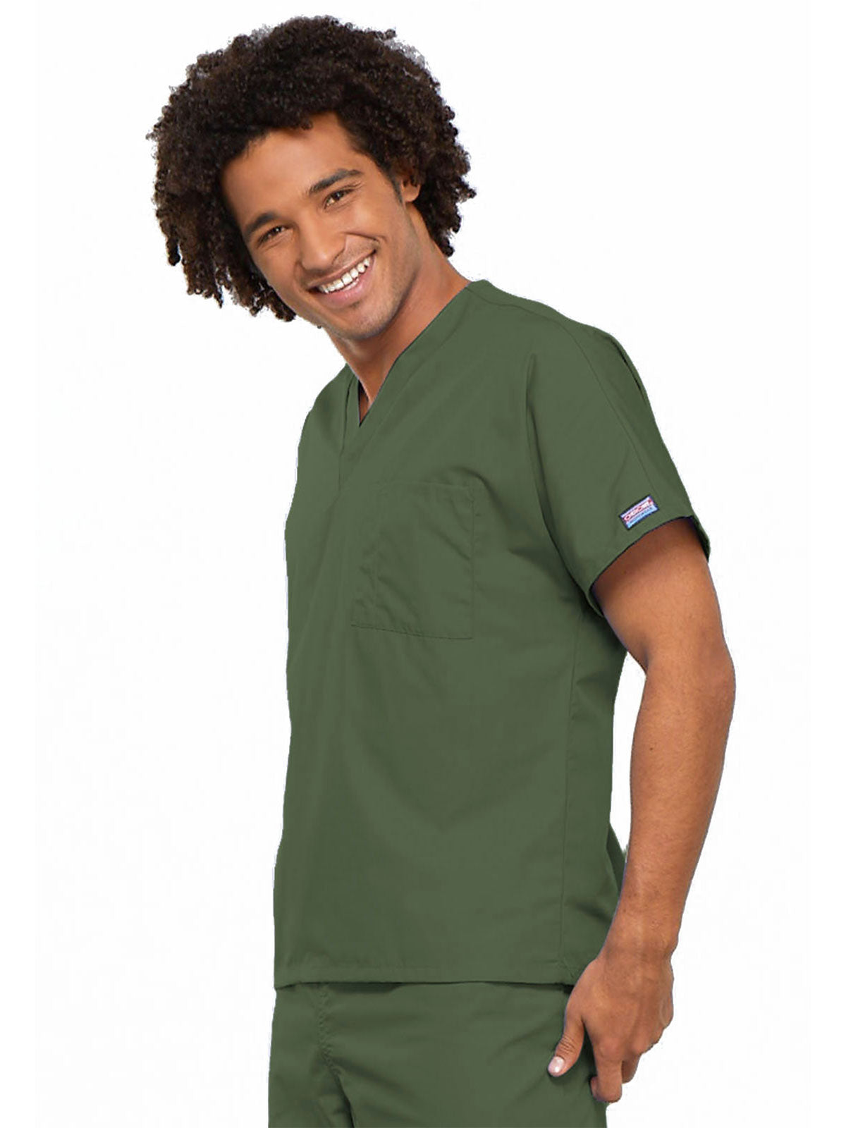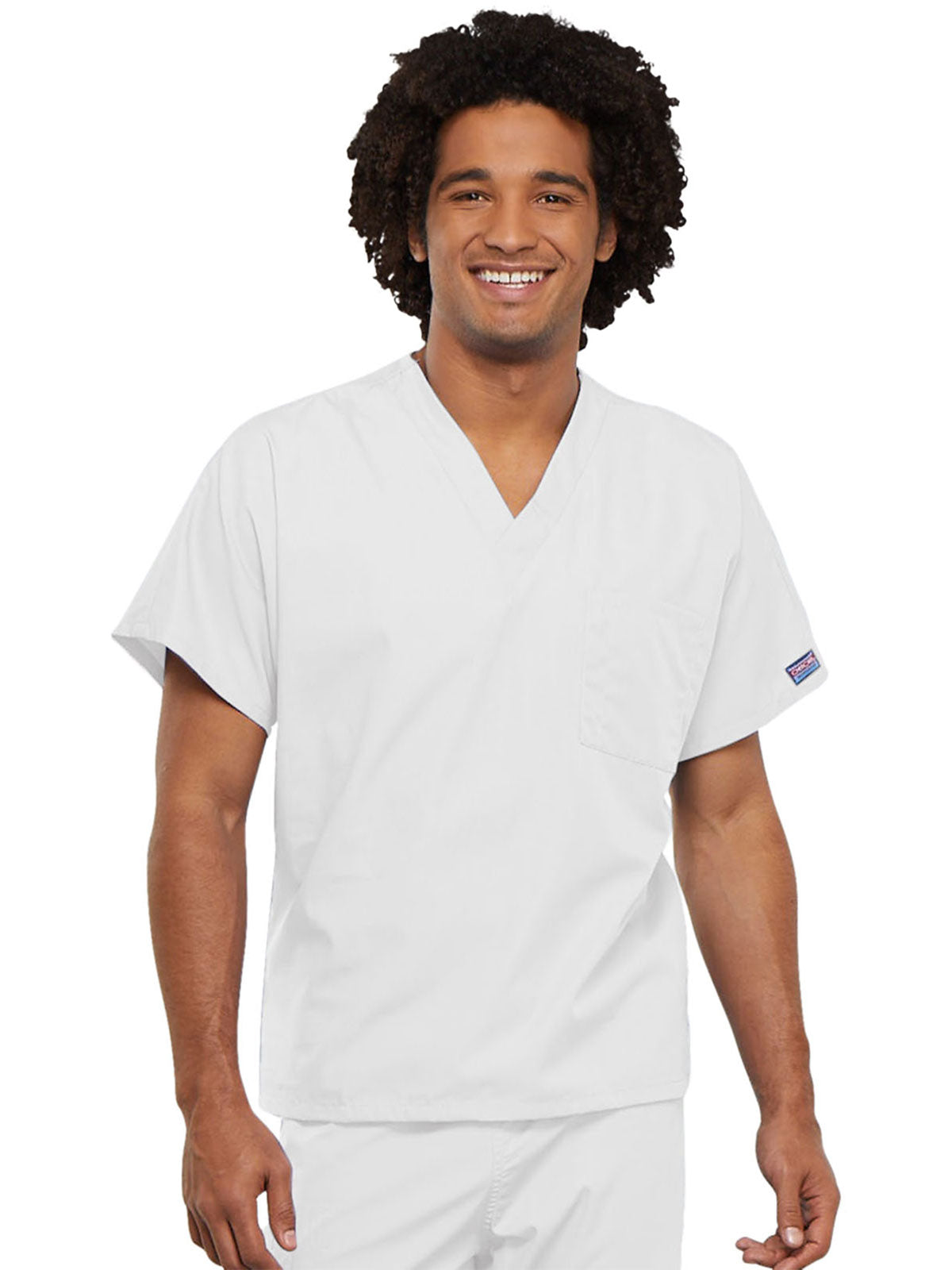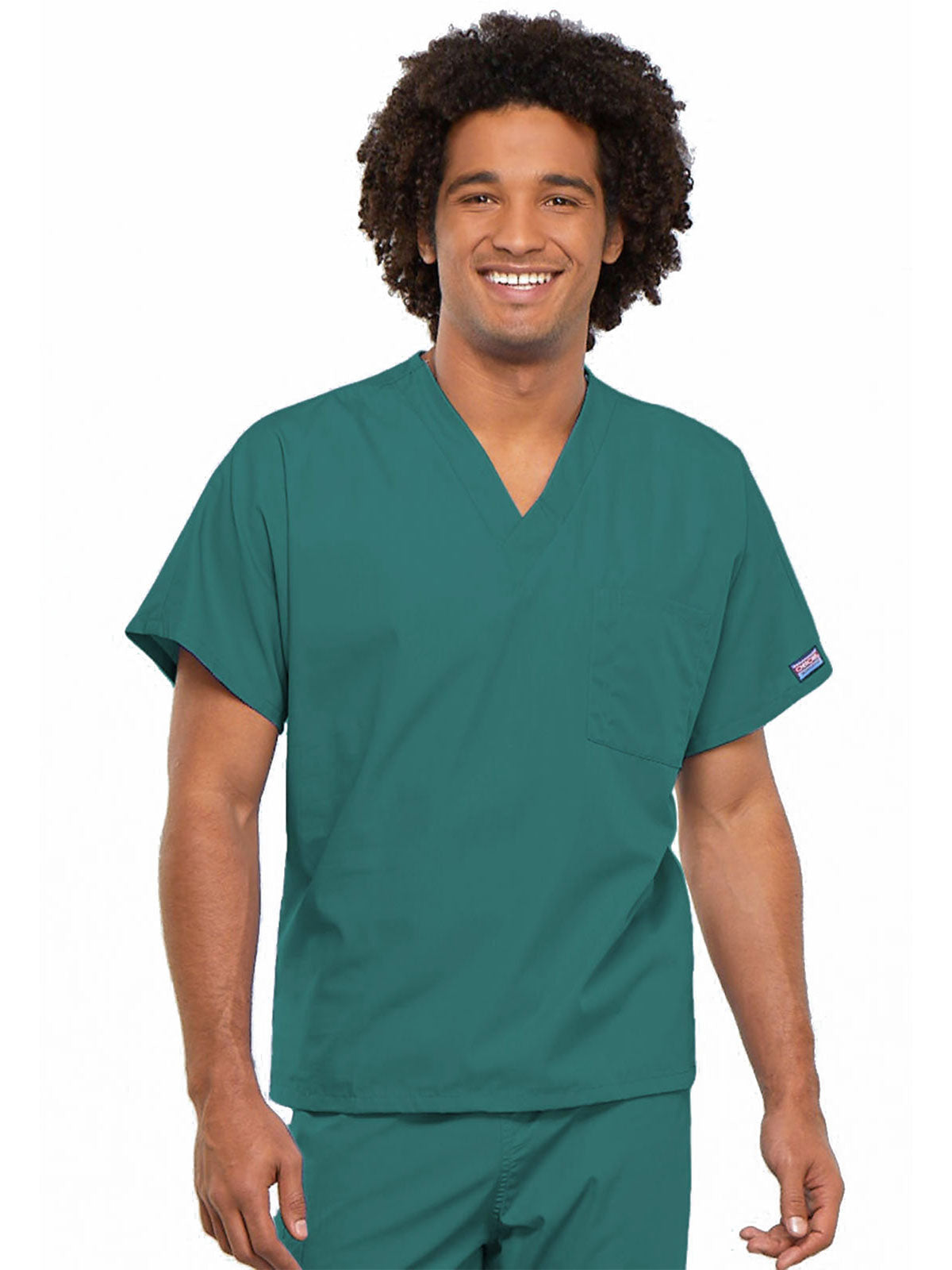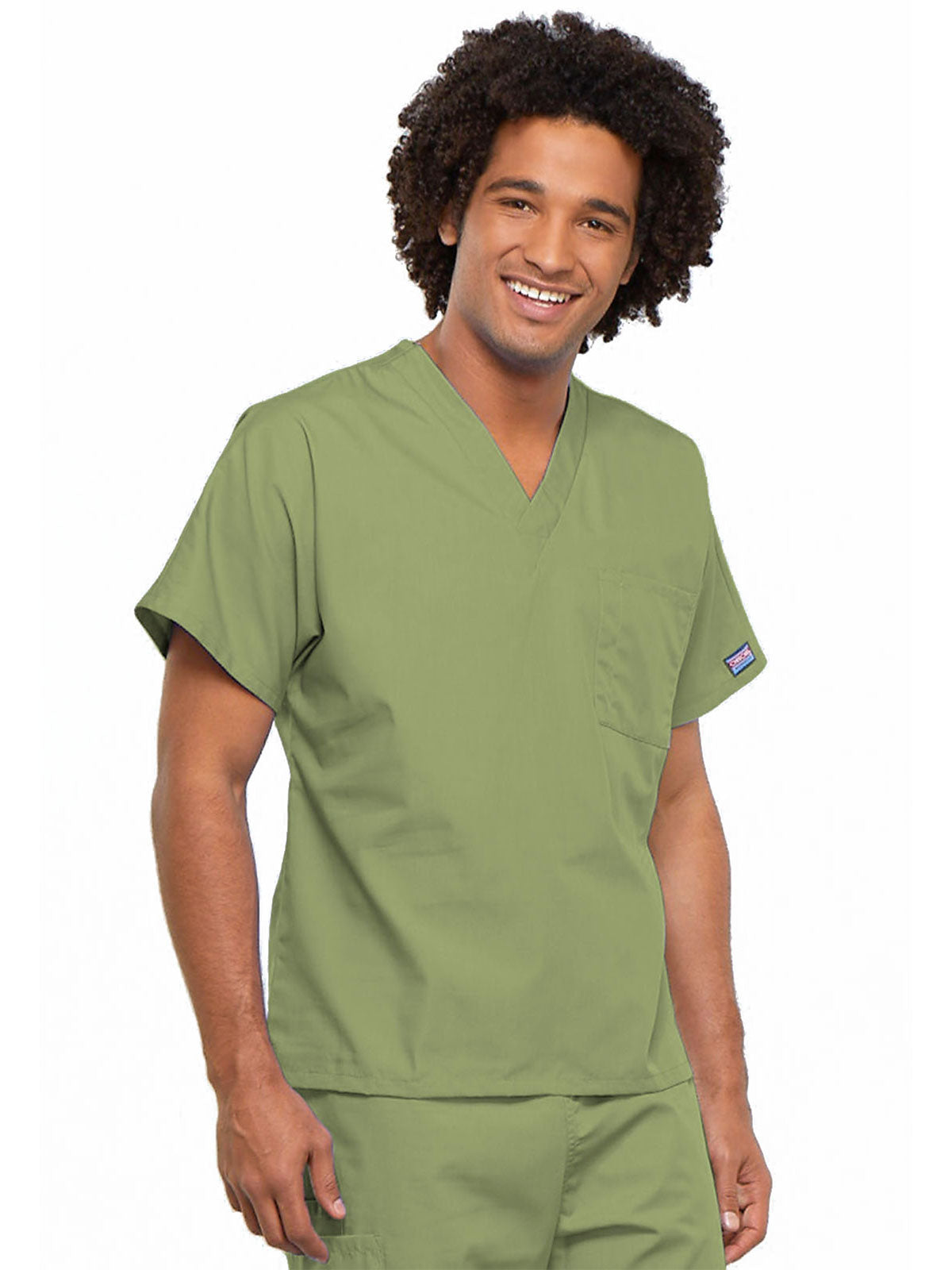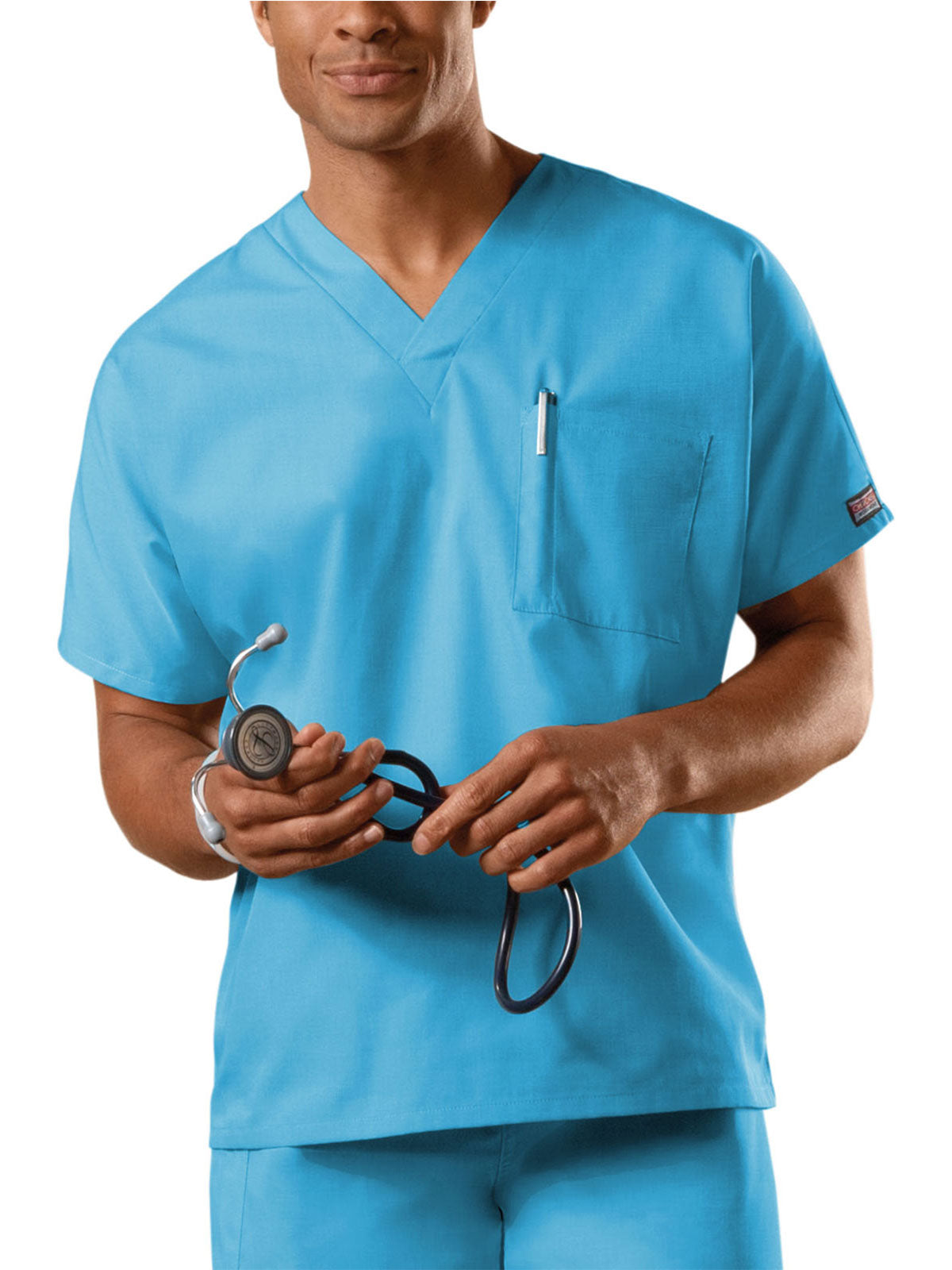 A dolman sleeve, V-neck Unisex Traditional fit tunic has a chest pocket with a pencil slot. This style looks great tucked in or untucked. Center back length 27.5"