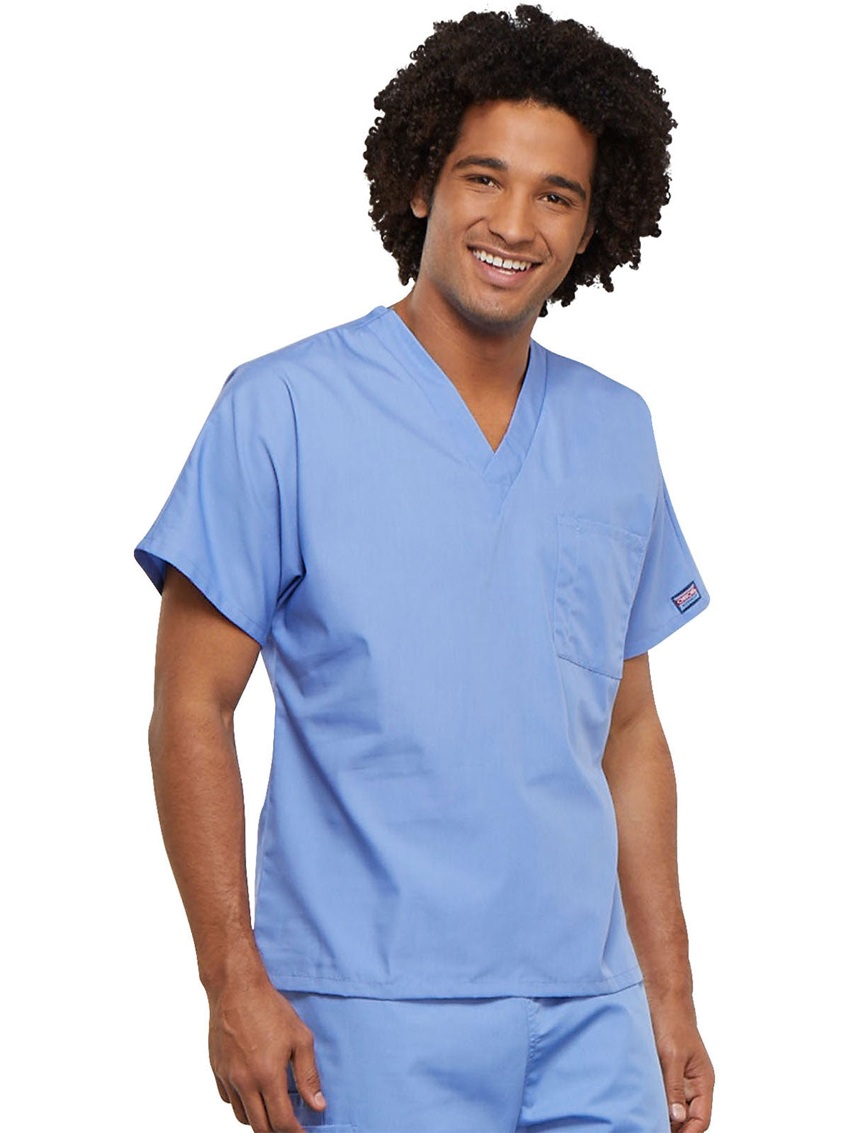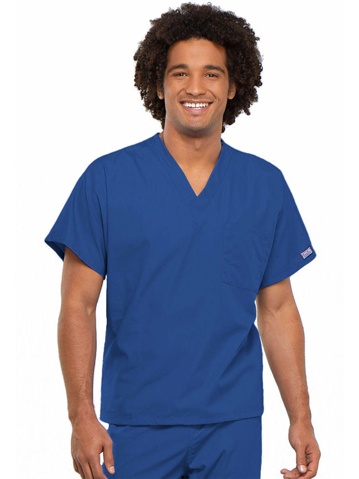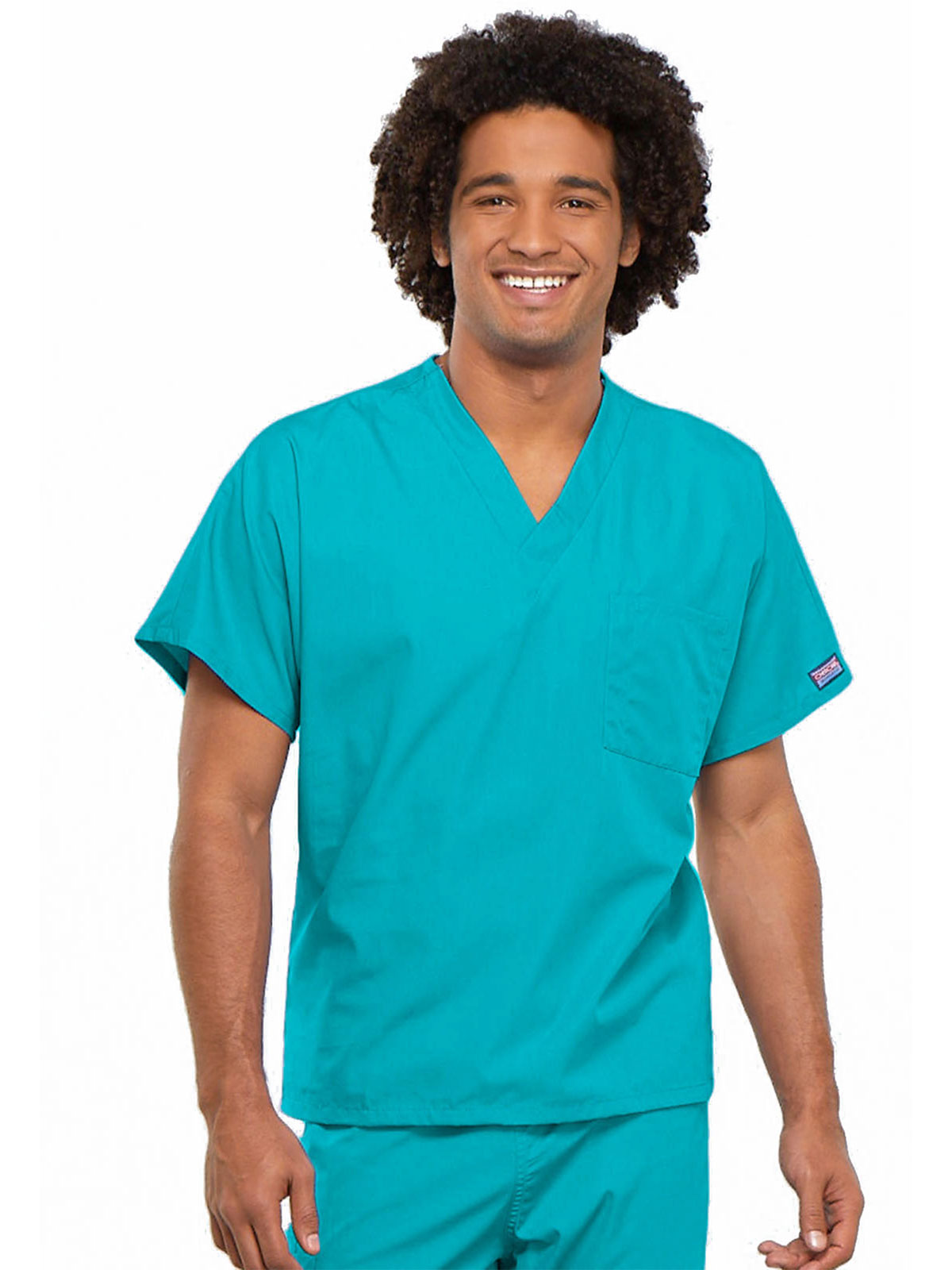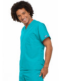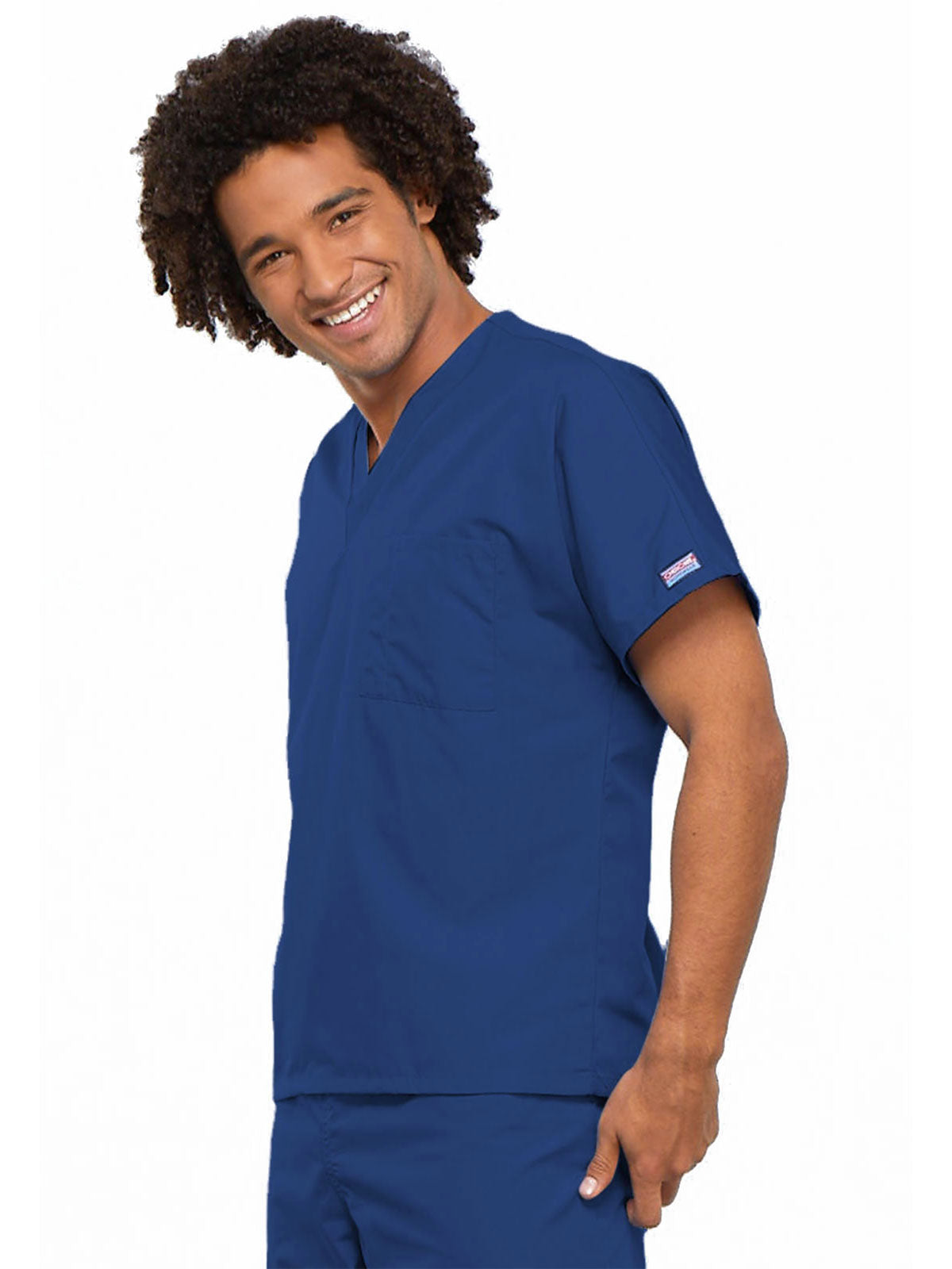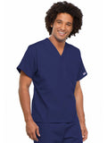 A dolman sleeve, V-neck Unisex Traditional fit tunic has a chest pocket with a pencil slot. This style looks great tucked in or untucked. Center back length 27.5"