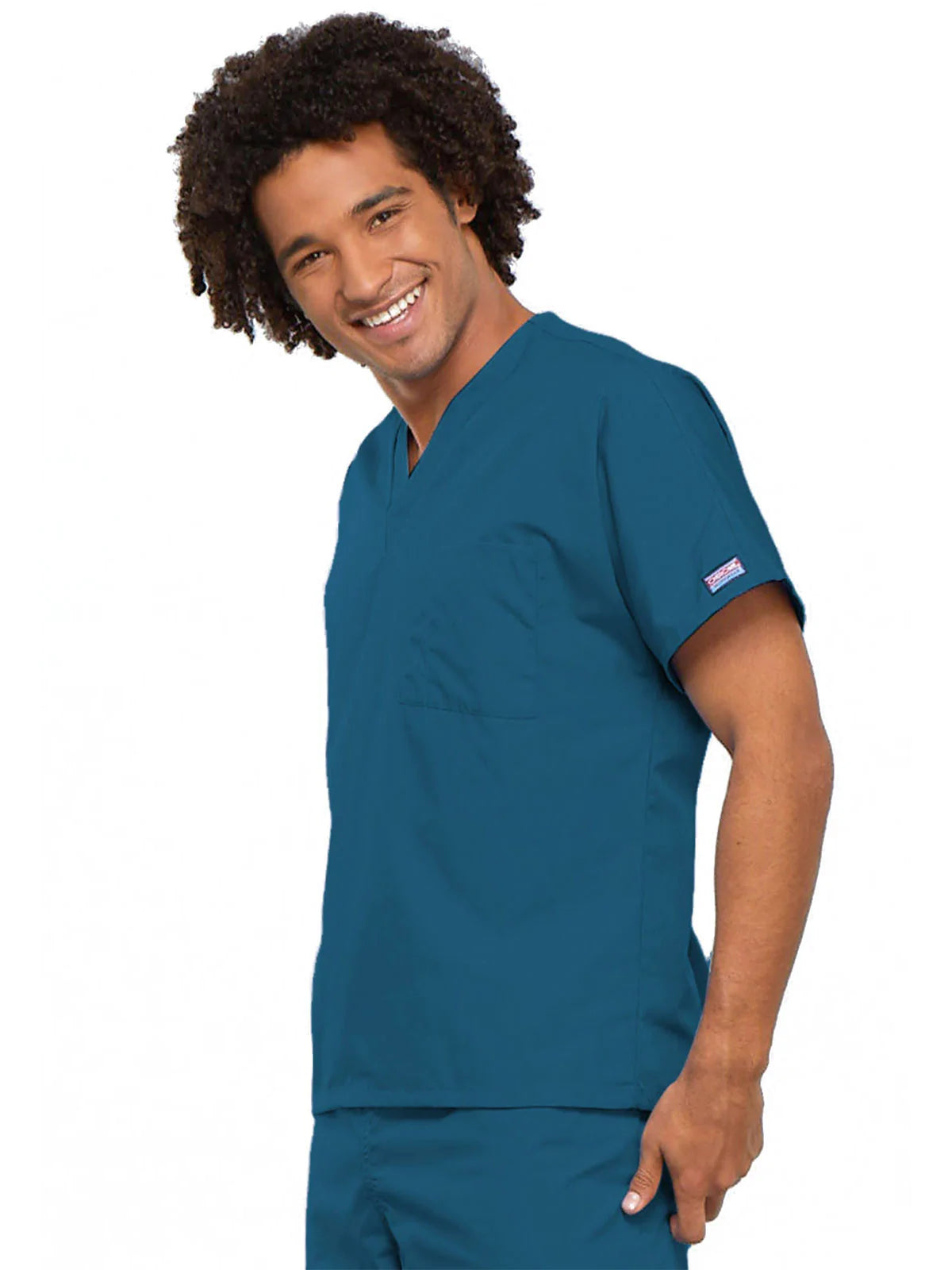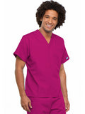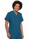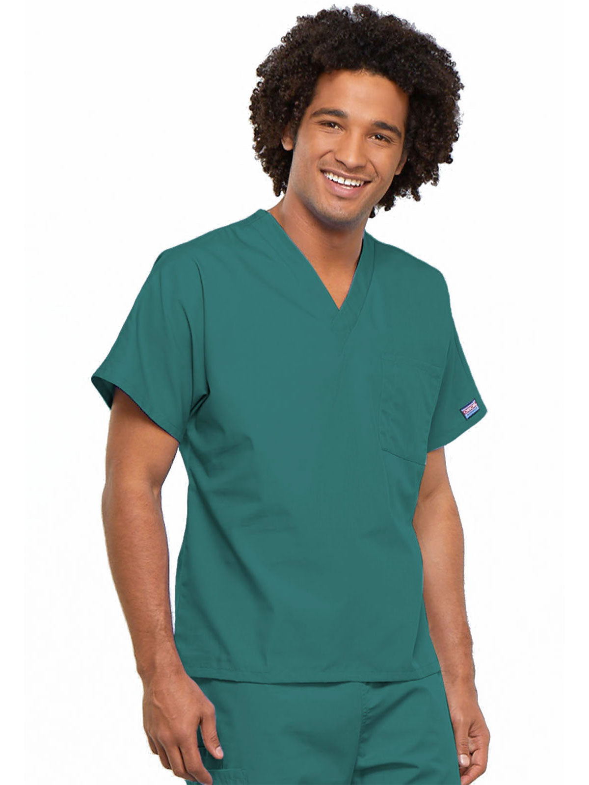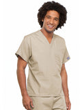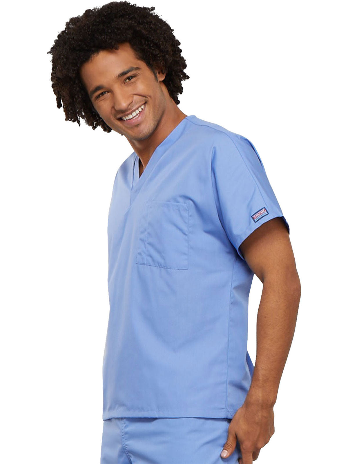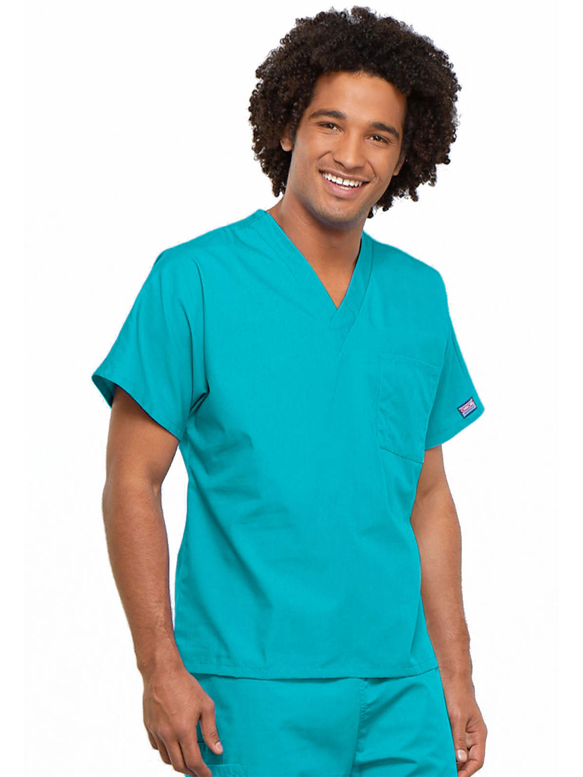 A dolman sleeve, V-neck Unisex Traditional fit tunic has a chest pocket with a pencil slot. This style looks great tucked in or untucked. Center back length 27.5"