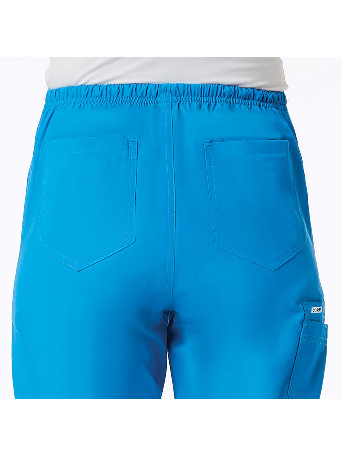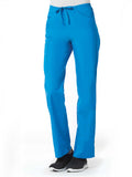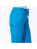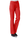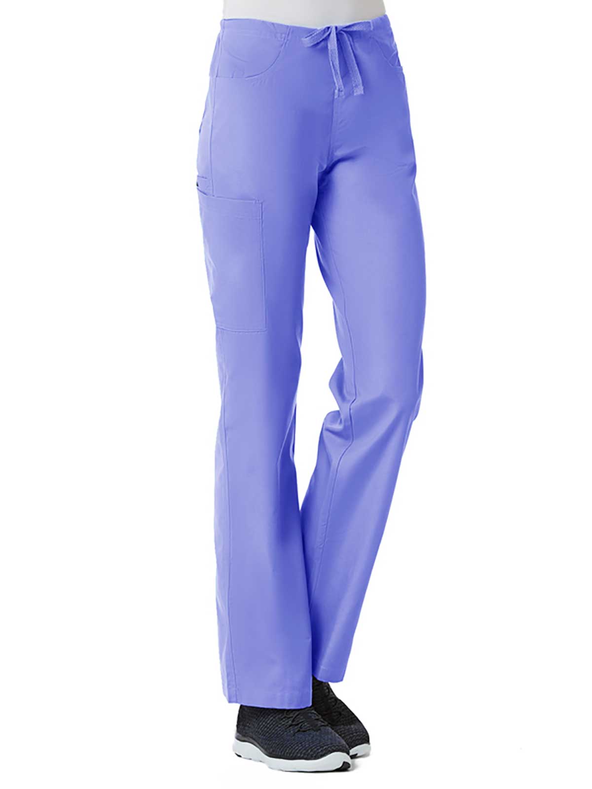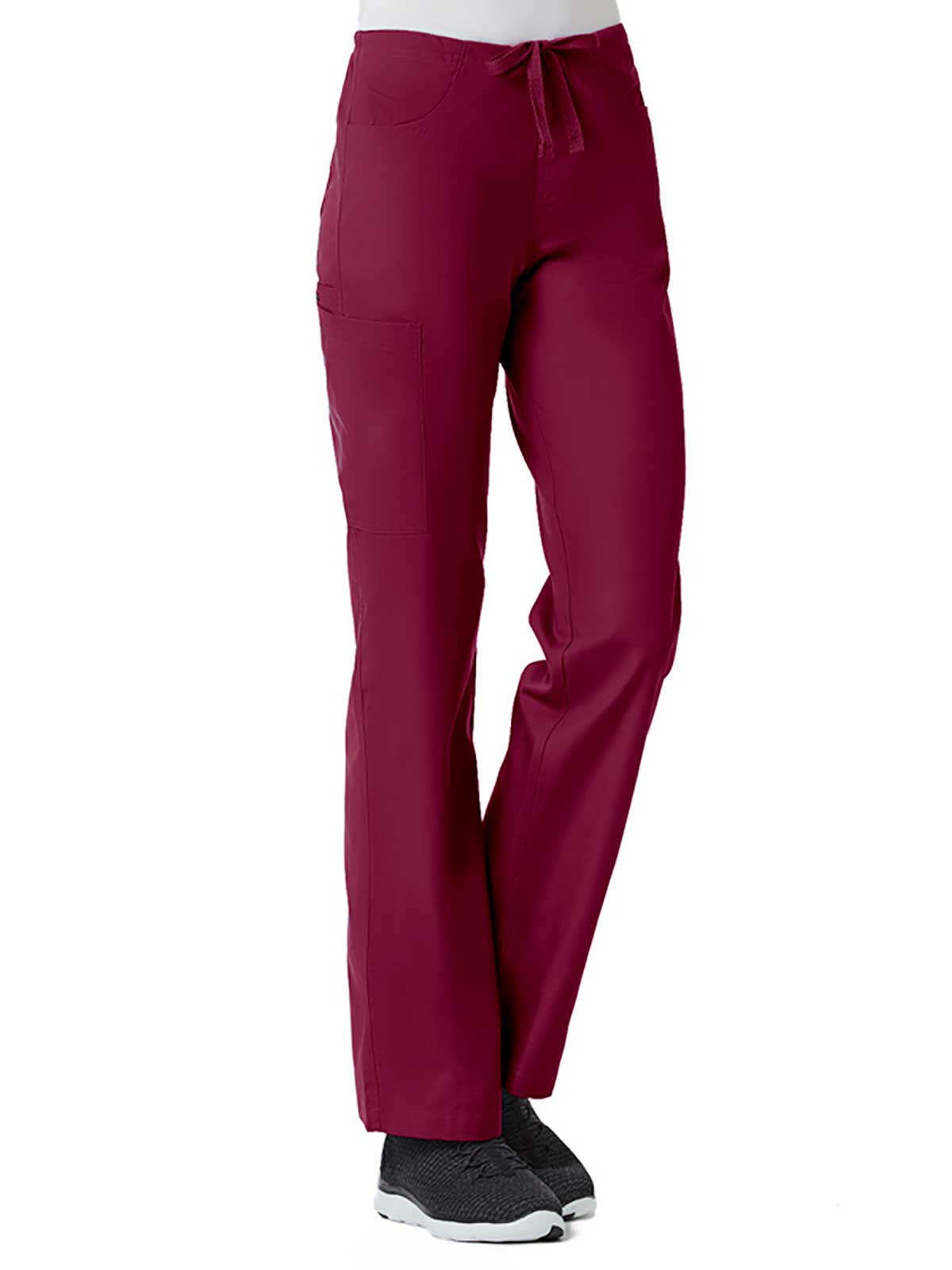 "*Ladies straight leg with flat front and elastic back waist *Two front slash pockets and two back patch pockets *One cargo pocket and inner cell pocket *Dyed-to-match drawstring *Side vents"