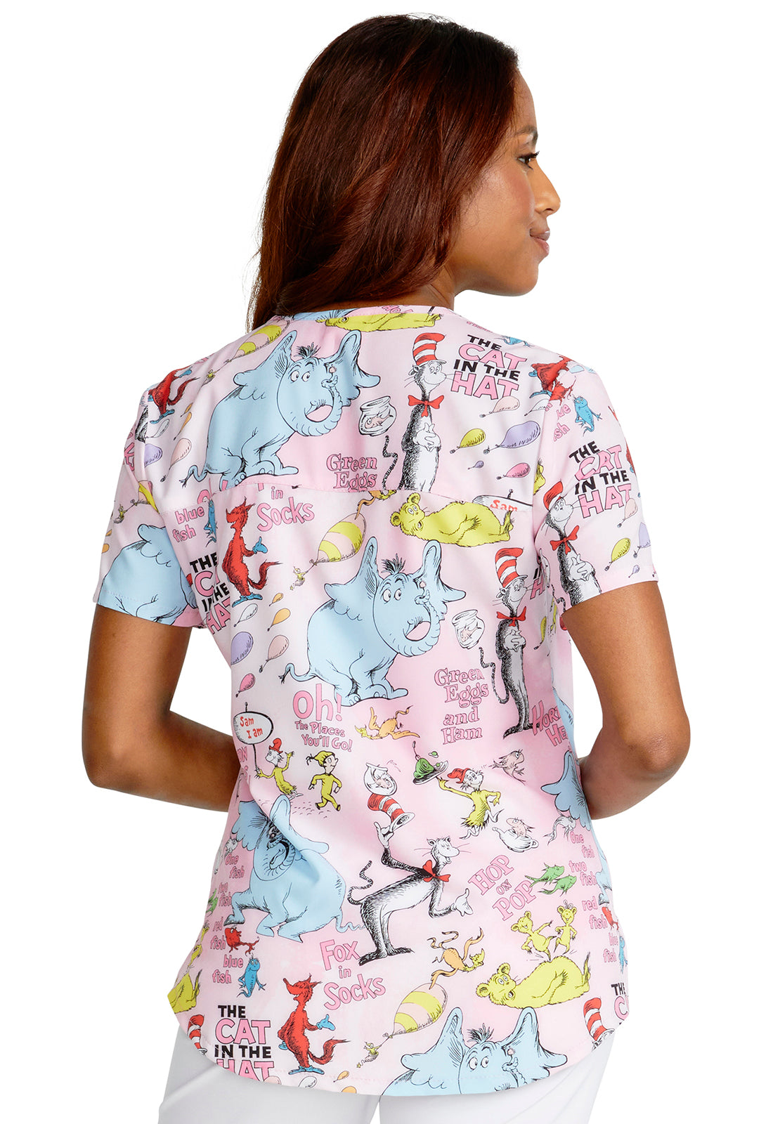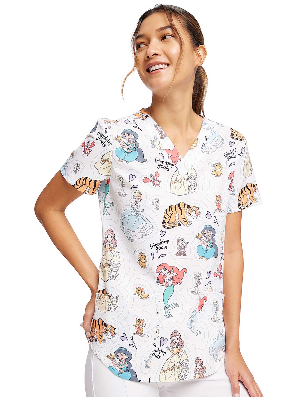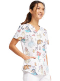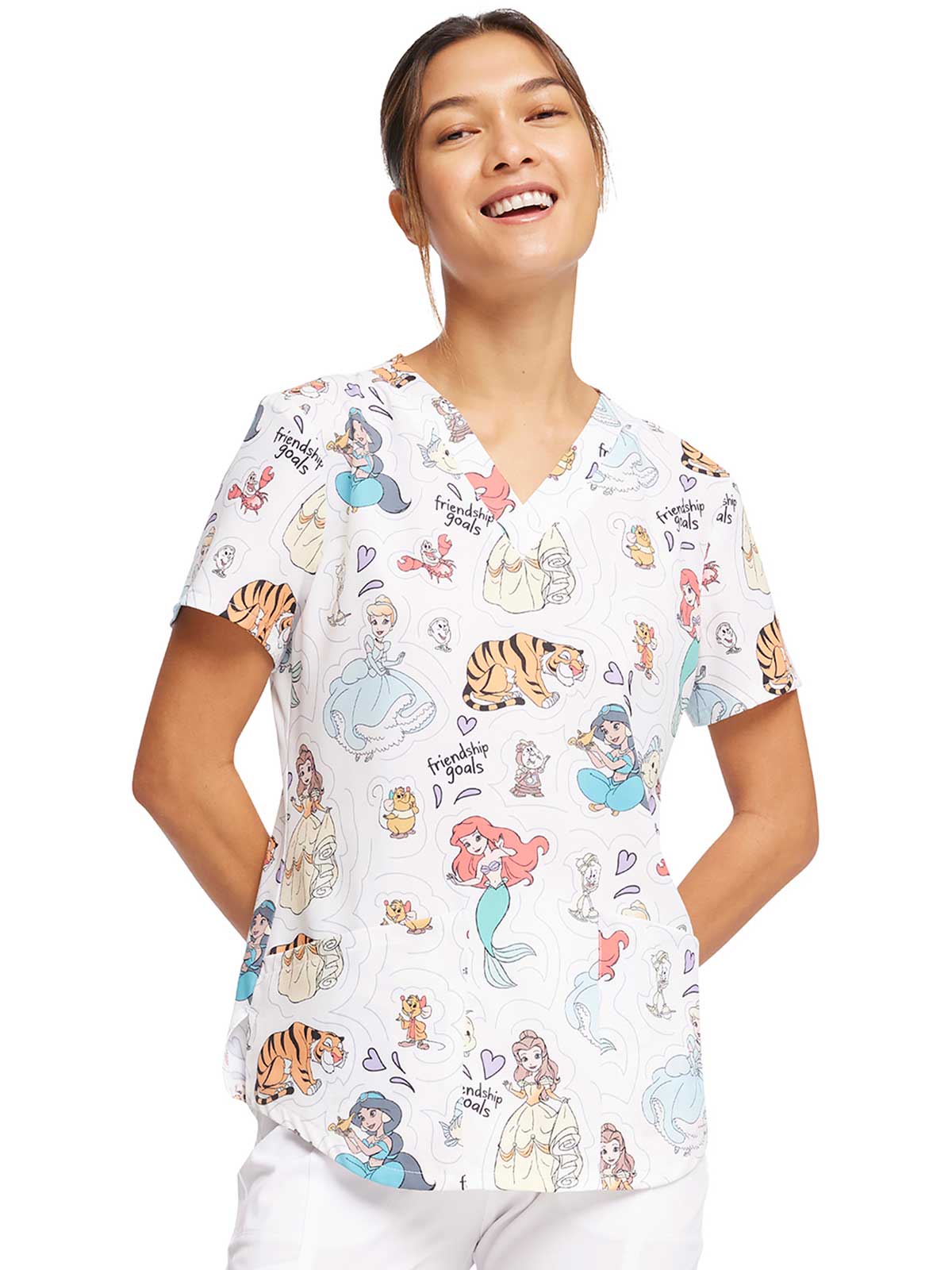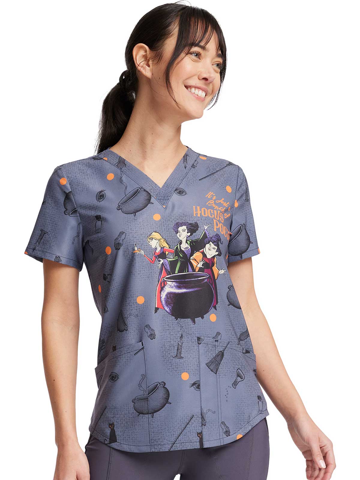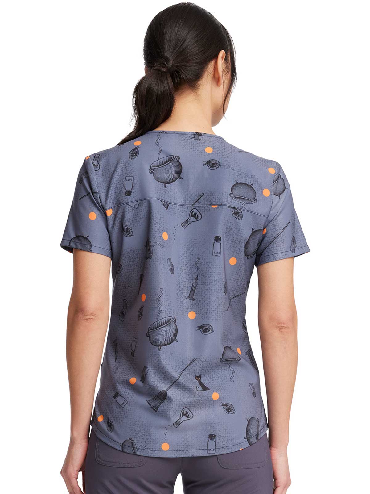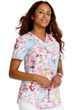 This Modern Classic fit V-neck print top has a back yoke seam, side vents and a rounded hem. There are two front patch pockets with a pen slot on the wearer's left pocket. Center back length: 26"