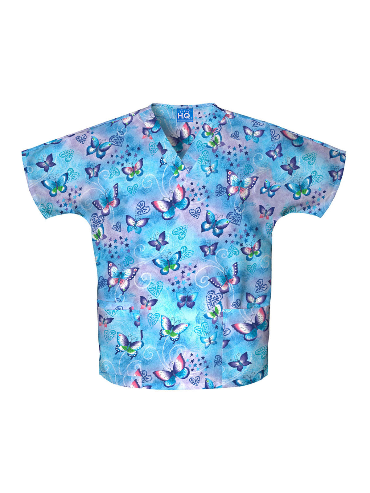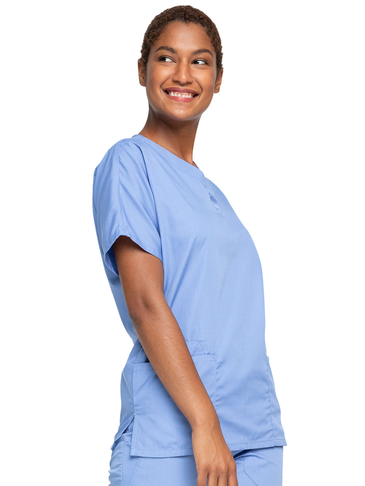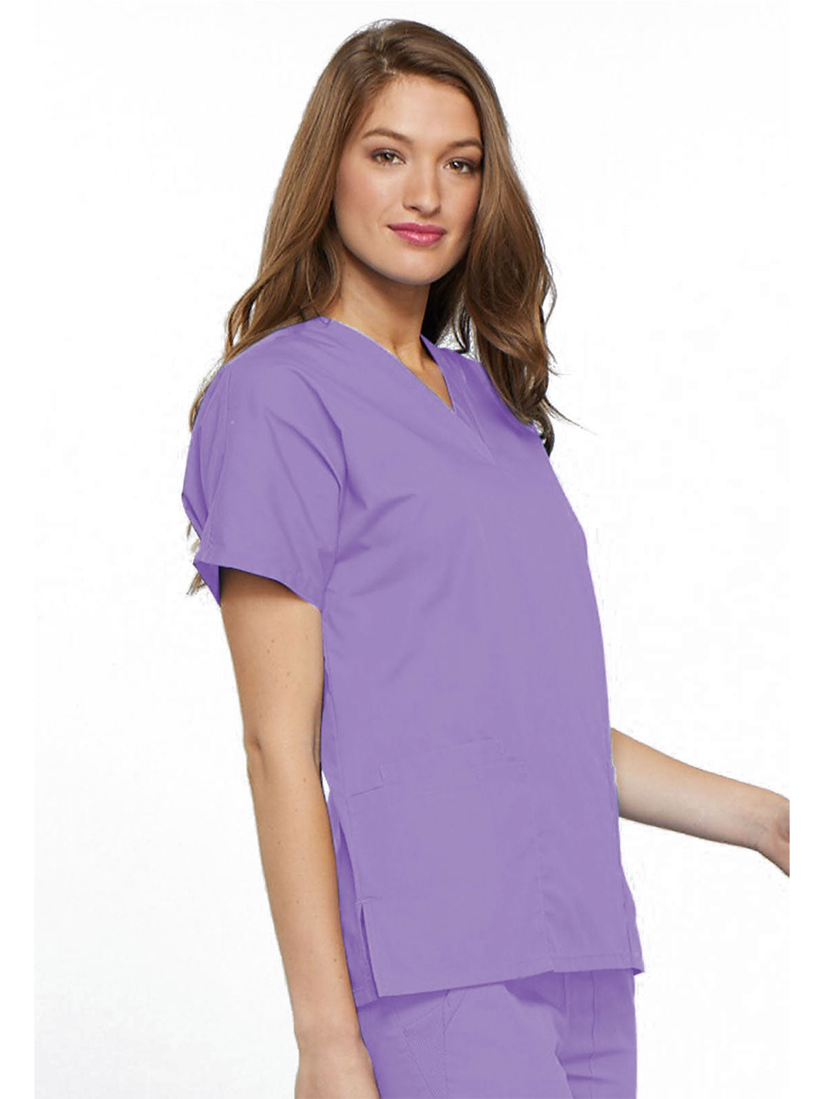A Traditional fit, dolman sleeve, V-neck top with side seam vents, two patch pockets and a cell phone pocket. Center back length: 26 1/2"