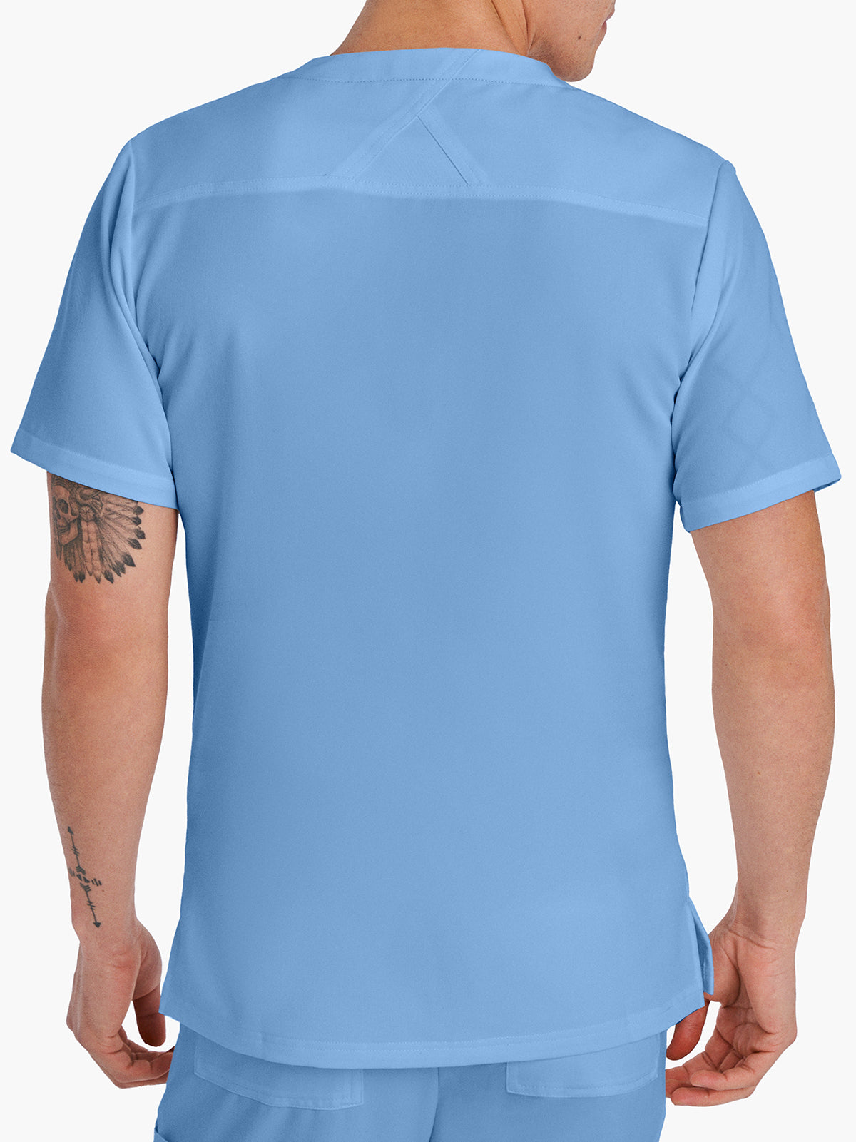 Our V-Tess men's 3-pocket v-neck scrub top features a breathable 4-way super stretch for maximum comfort and flexibility and vibrant colors that last wash after wash. With a fade resistant and super stretch material, this scrub top comes in a contemporary slim fit with a back yoke for a flattering shape. Not to mention, a contrasting stripe detail on the chest pocket and side vents for extra ease of movement.