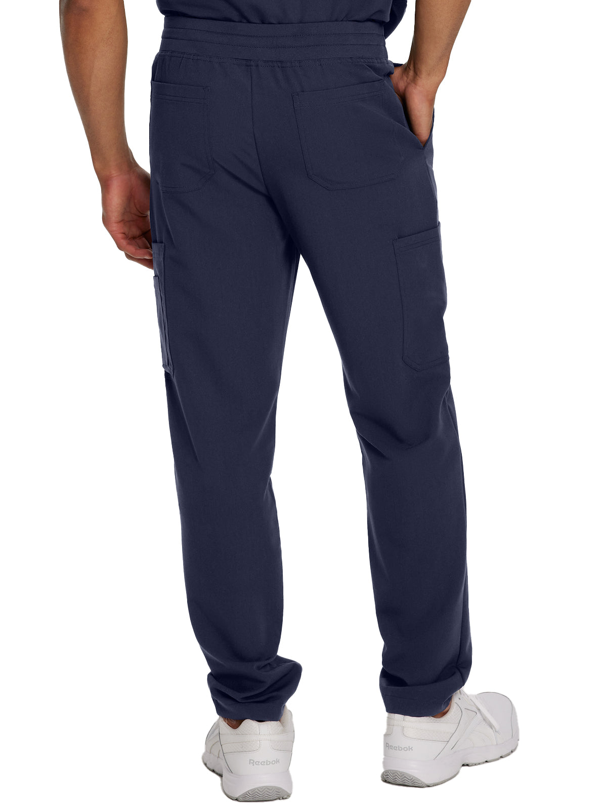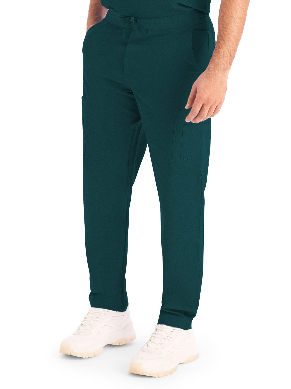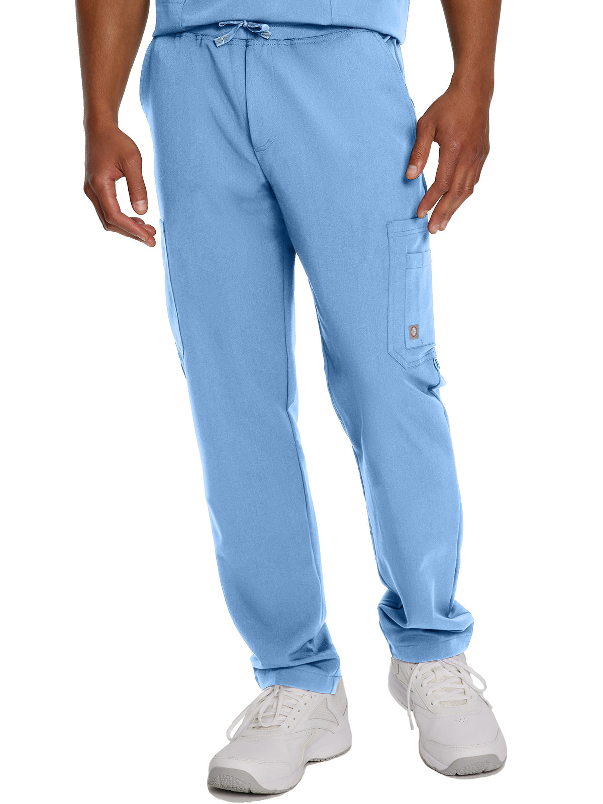 Our fashionable V-Tess men's straight-leg cargo scrub pants come with a mid-rise triple-elastic waist with a mock fly front. With 7 pockets and a contemporary slim fit that's contoured to conform to your body and complement your shape, these fade resistant and breathable cargo pants support healthcare professionals' energy all day.