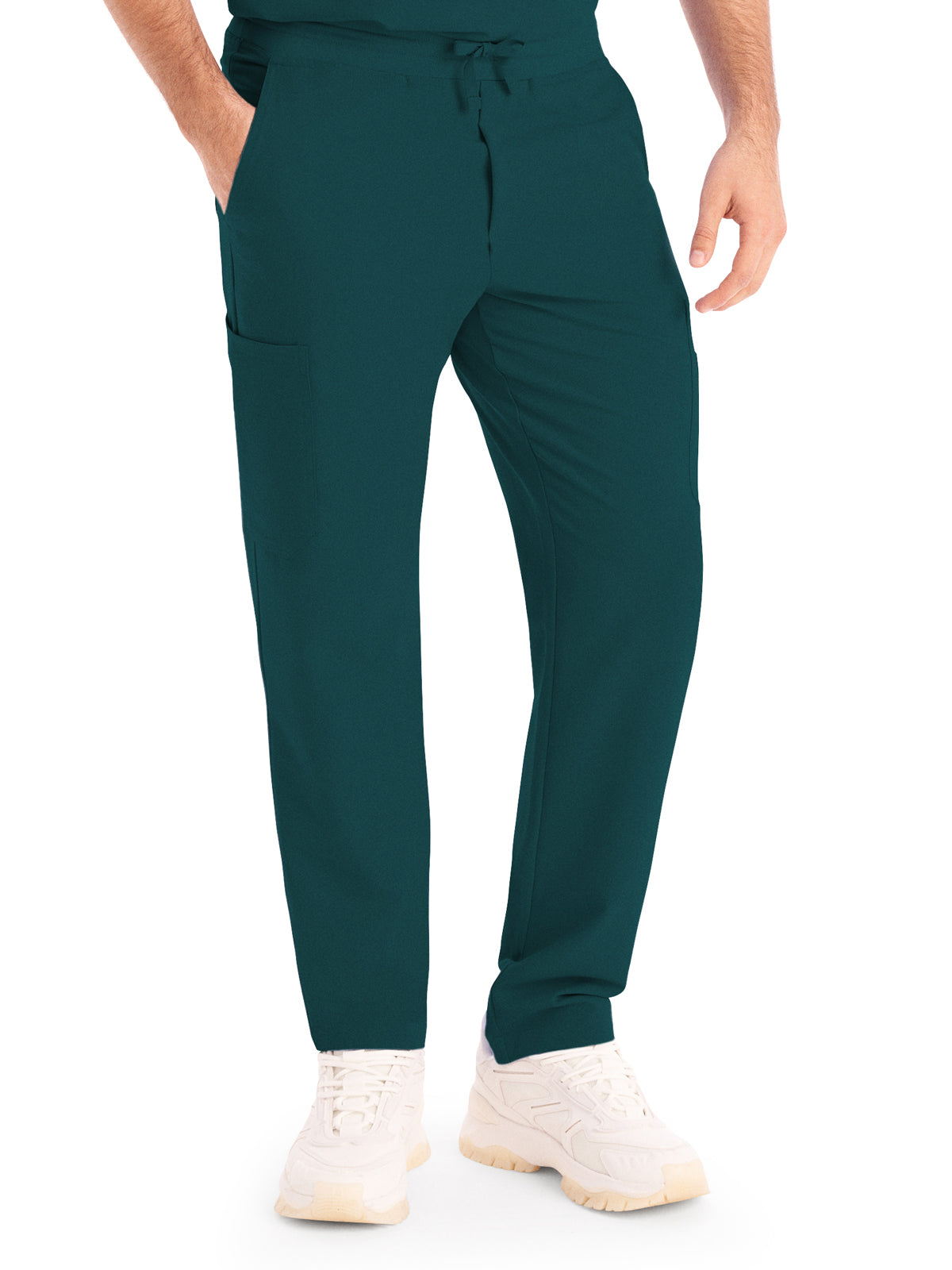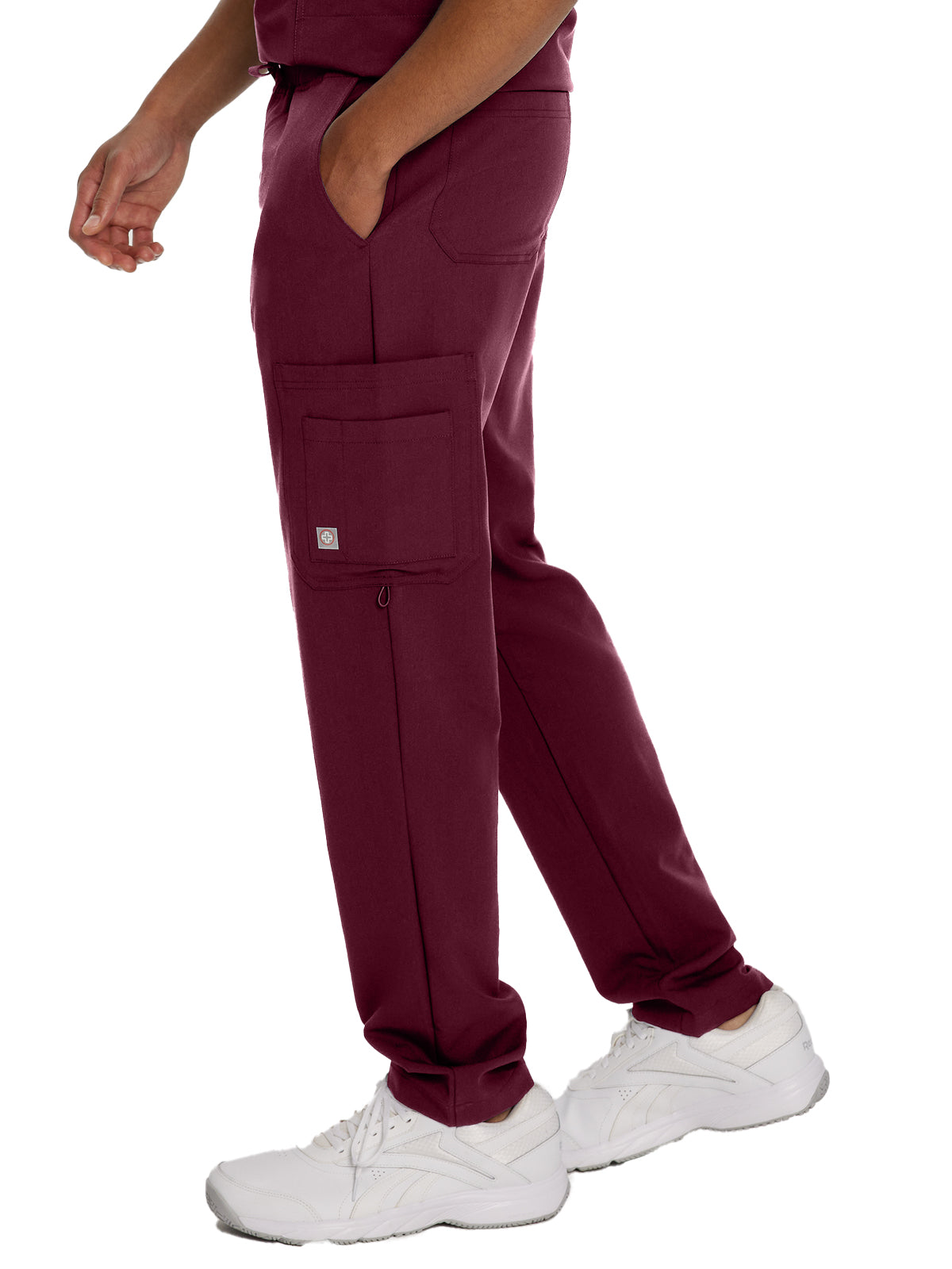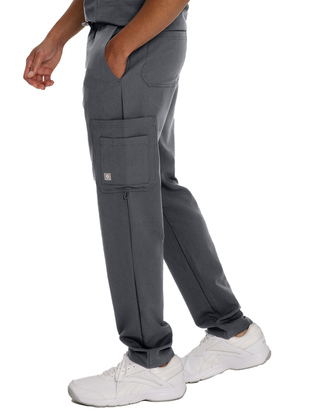 Our fashionable V-Tess men's straight-leg cargo scrub pants come with a mid-rise triple-elastic waist with a mock fly front. With 7 pockets and a contemporary slim fit that's contoured to conform to your body and complement your shape, these fade resistant and breathable cargo pants support healthcare professionals' energy all day.