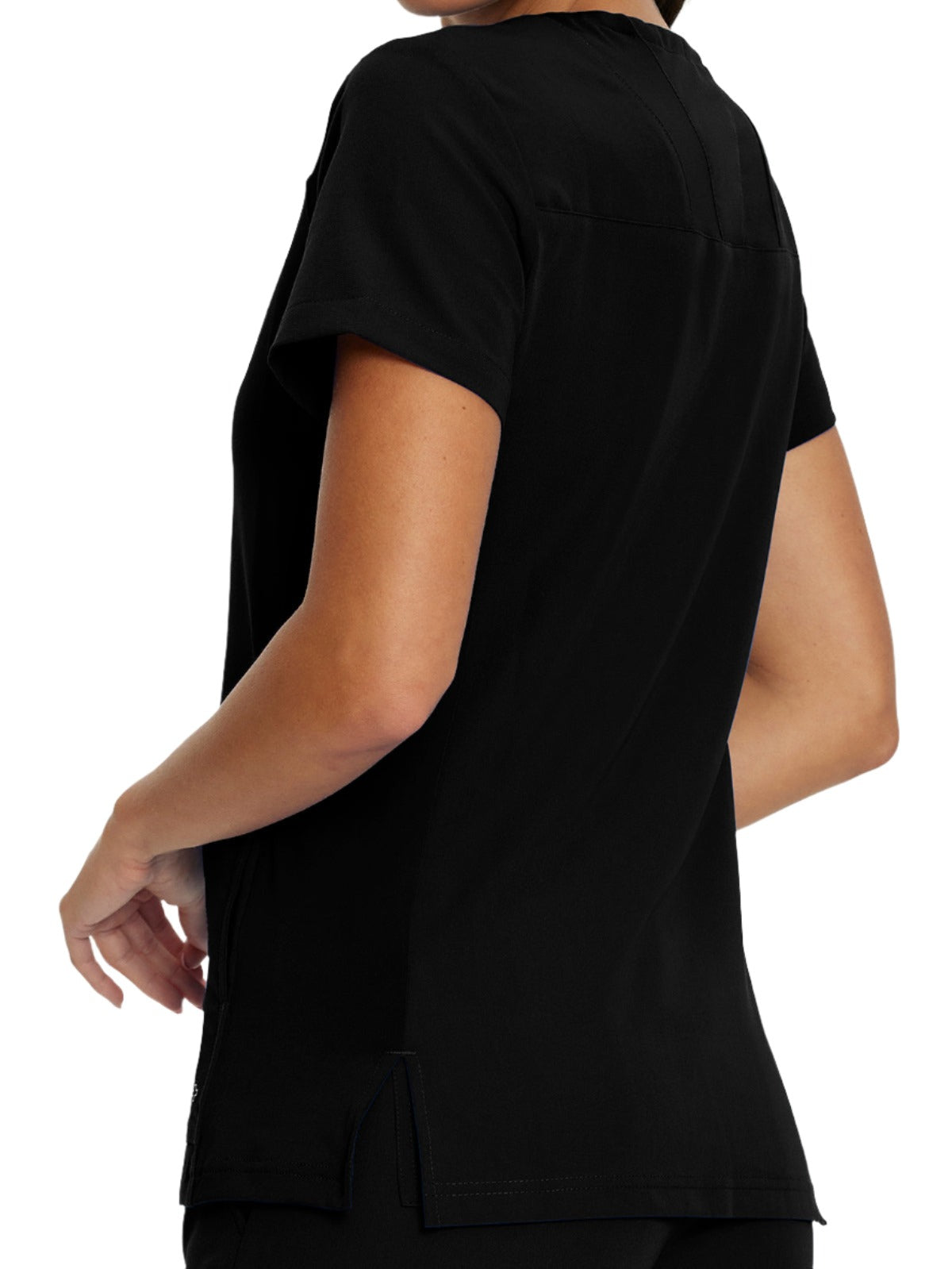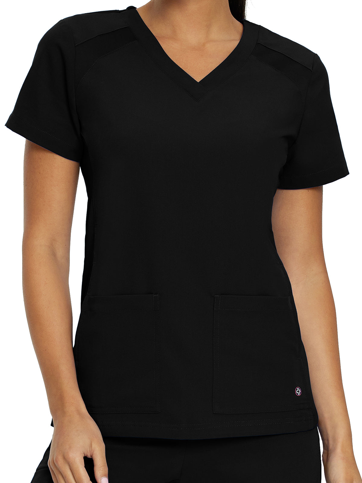 At White Cross, we know that healthcare professionals are often called upon to be exceptional, which is why we make our garments exceptional too. The V-Tess women's 4-pocket V-neck scrub top is fade resistant and wrinkle resistant with a jersey-knit front and back yoke for ventilation. This top also has front and back princess seams for feminine shaping, side vents for extra ease of movement, and a super stretch.