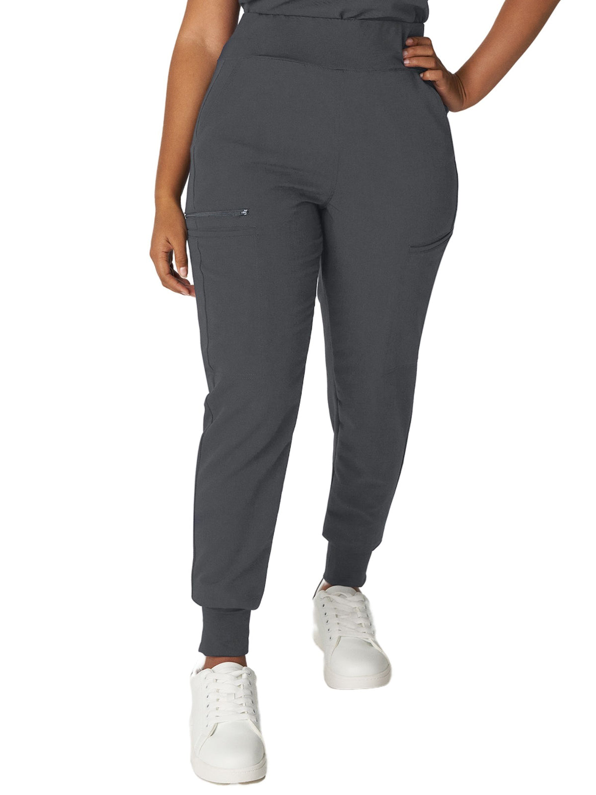This Contemporary Fit, high-rise Jogger has a hidden flat elastic drawstring inside the soft knit waistband. Back knit panel and bottom knit cuffs stay in place and don't ride up. Also comes with 2 front pockets, 1 zip cargo pocket, 2 cargo pockets and 2 back zip pockets providing a generous amount of space to hold your items for your every day needs.