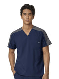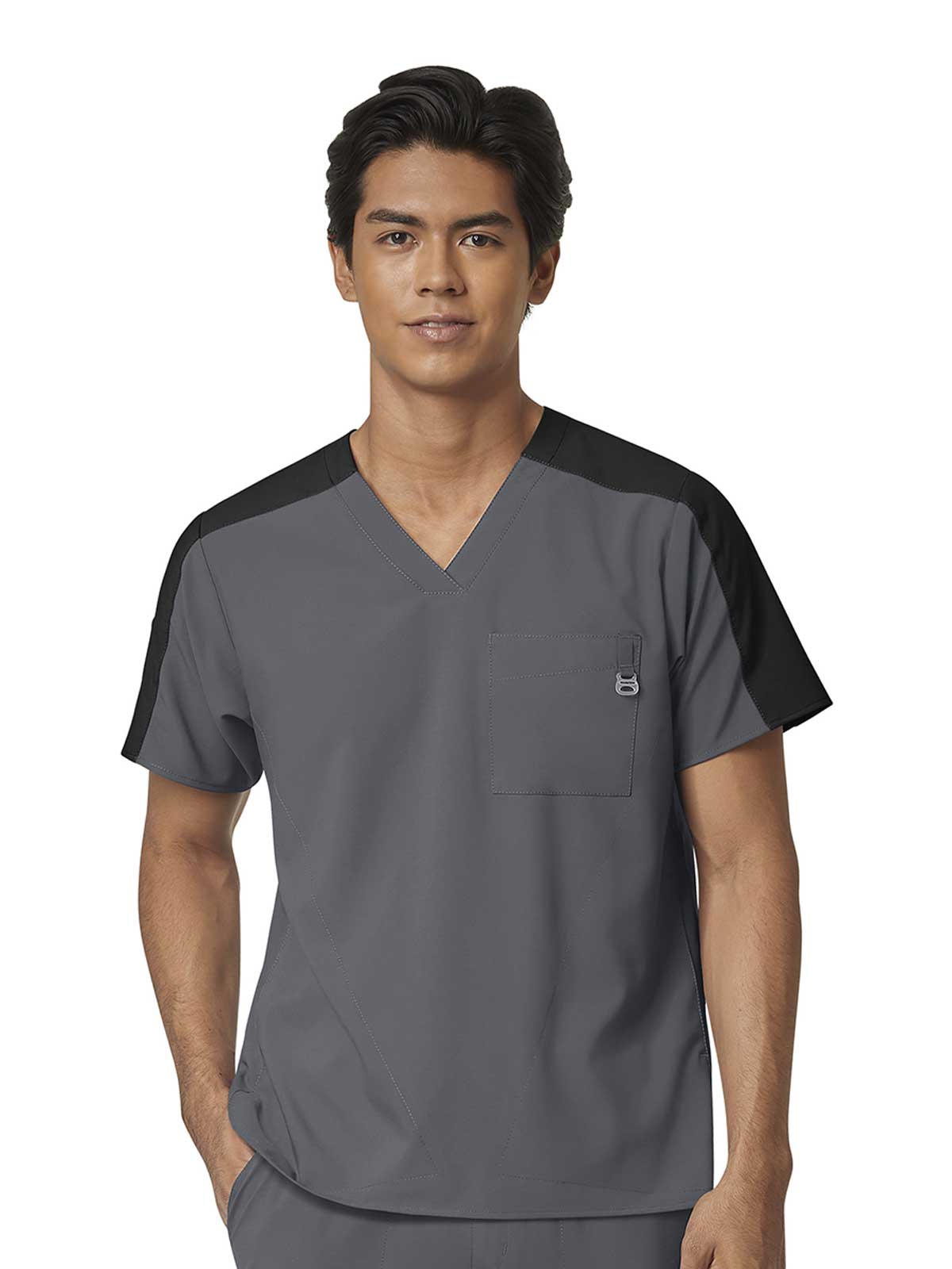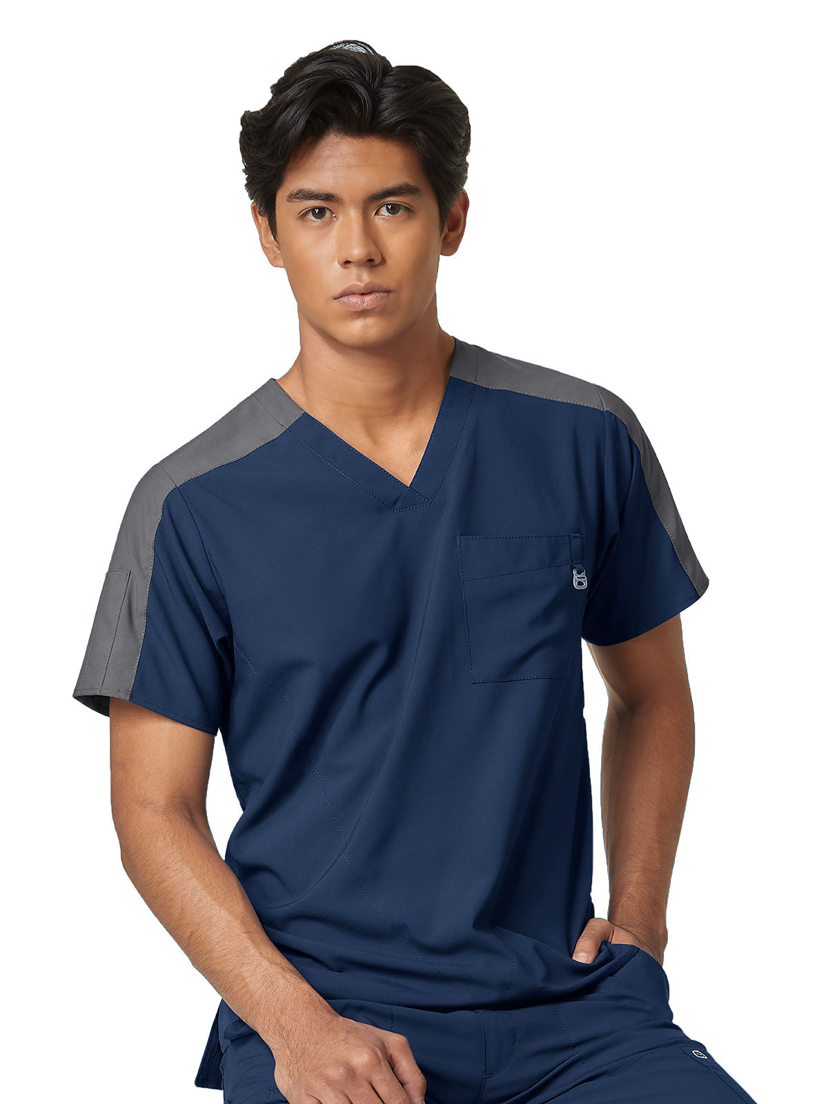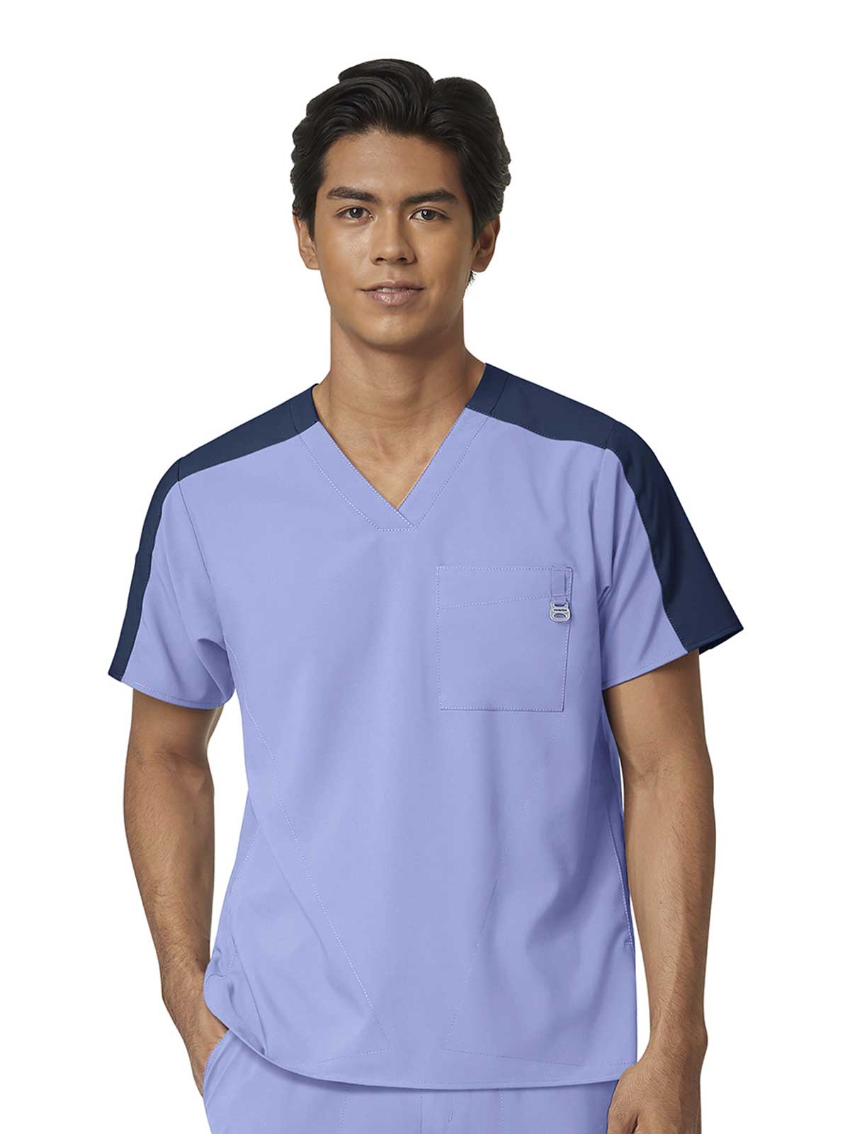 Make your uniform work for you with the W123 by WonderWink Men's Colorblock Scrub. Experience a wardrobe essential that maximizes your everyday utility with functional pocket details and contoured seaming for improved garment durability.