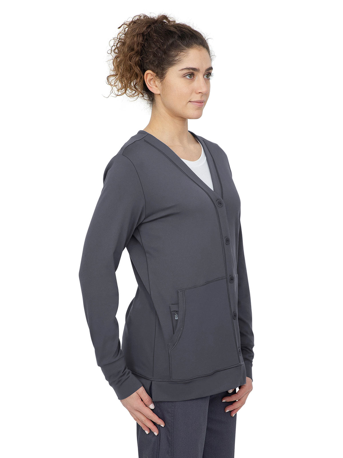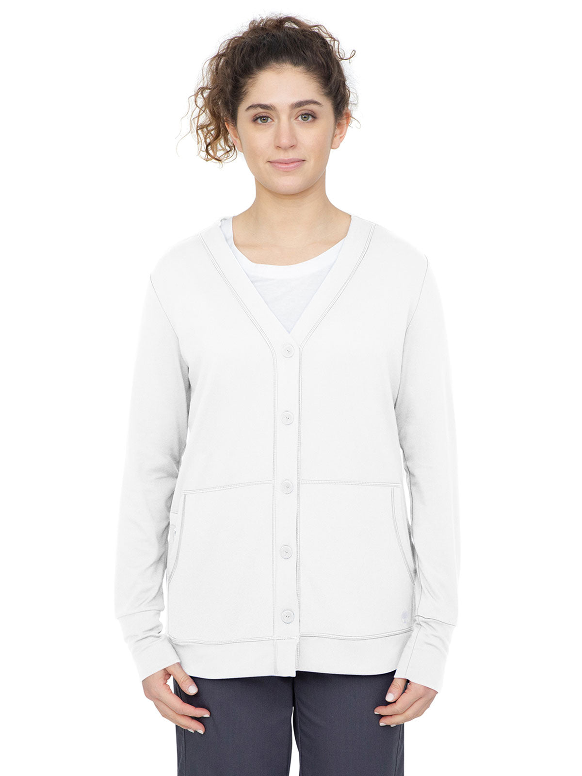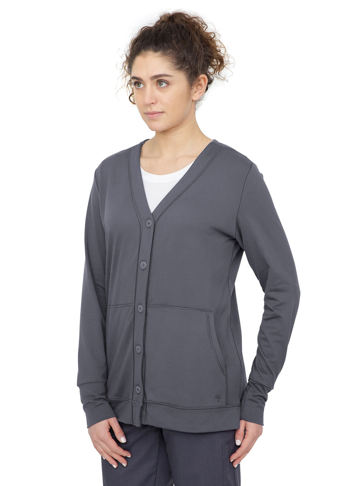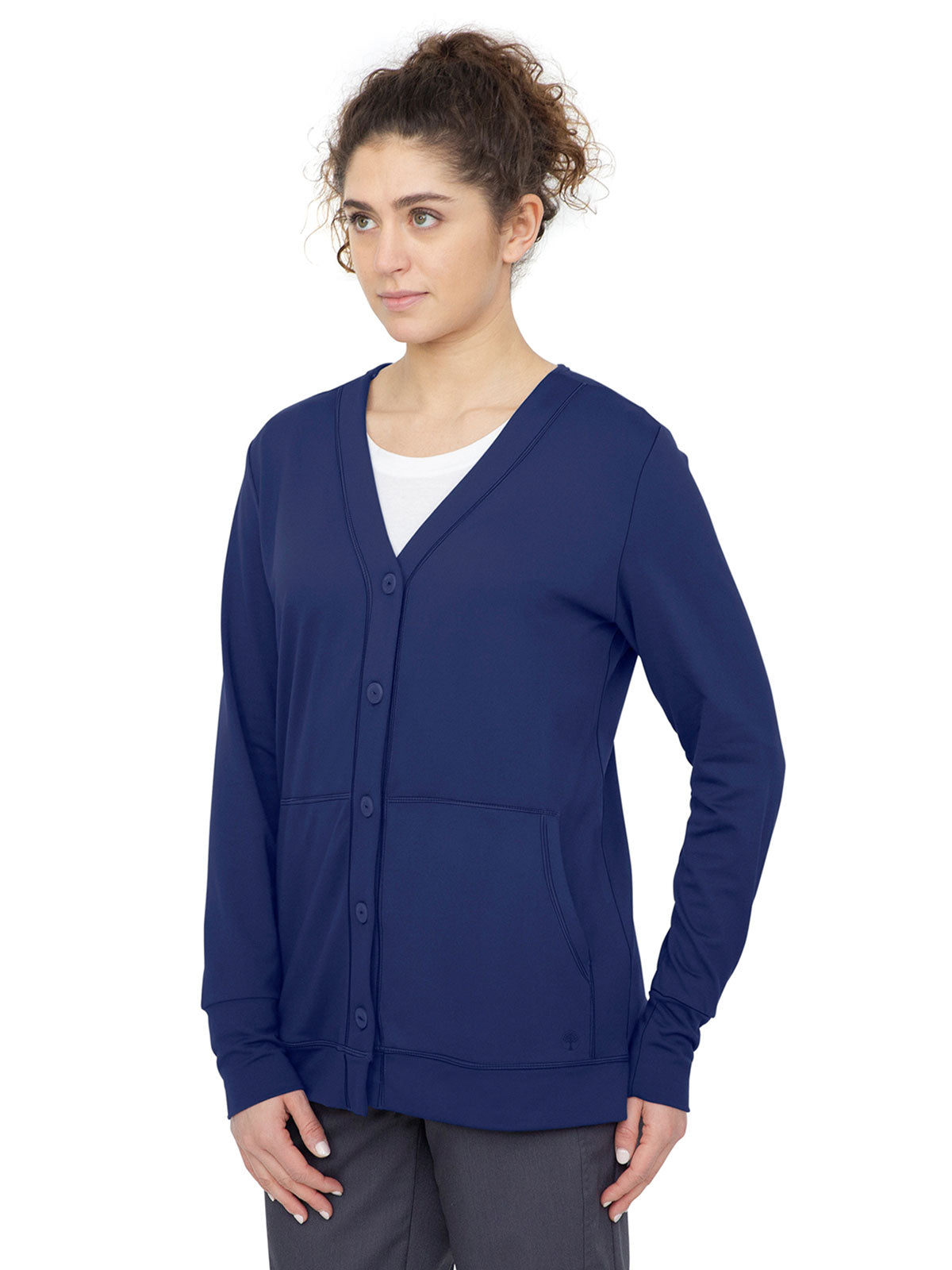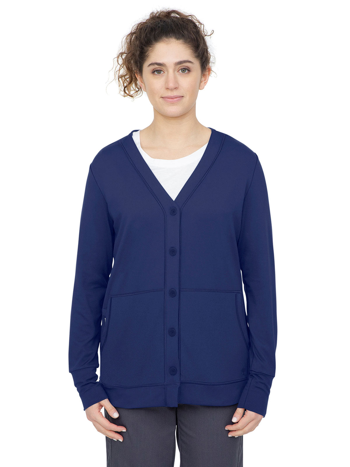 Warm up in the cozy Purple Label by Healing Hands Women's Becca Solid Scrub Jacket. This cute cardigan silhouette is perfect for layering on a chilly day. It features extra large front pockets and a traditional button down closure.