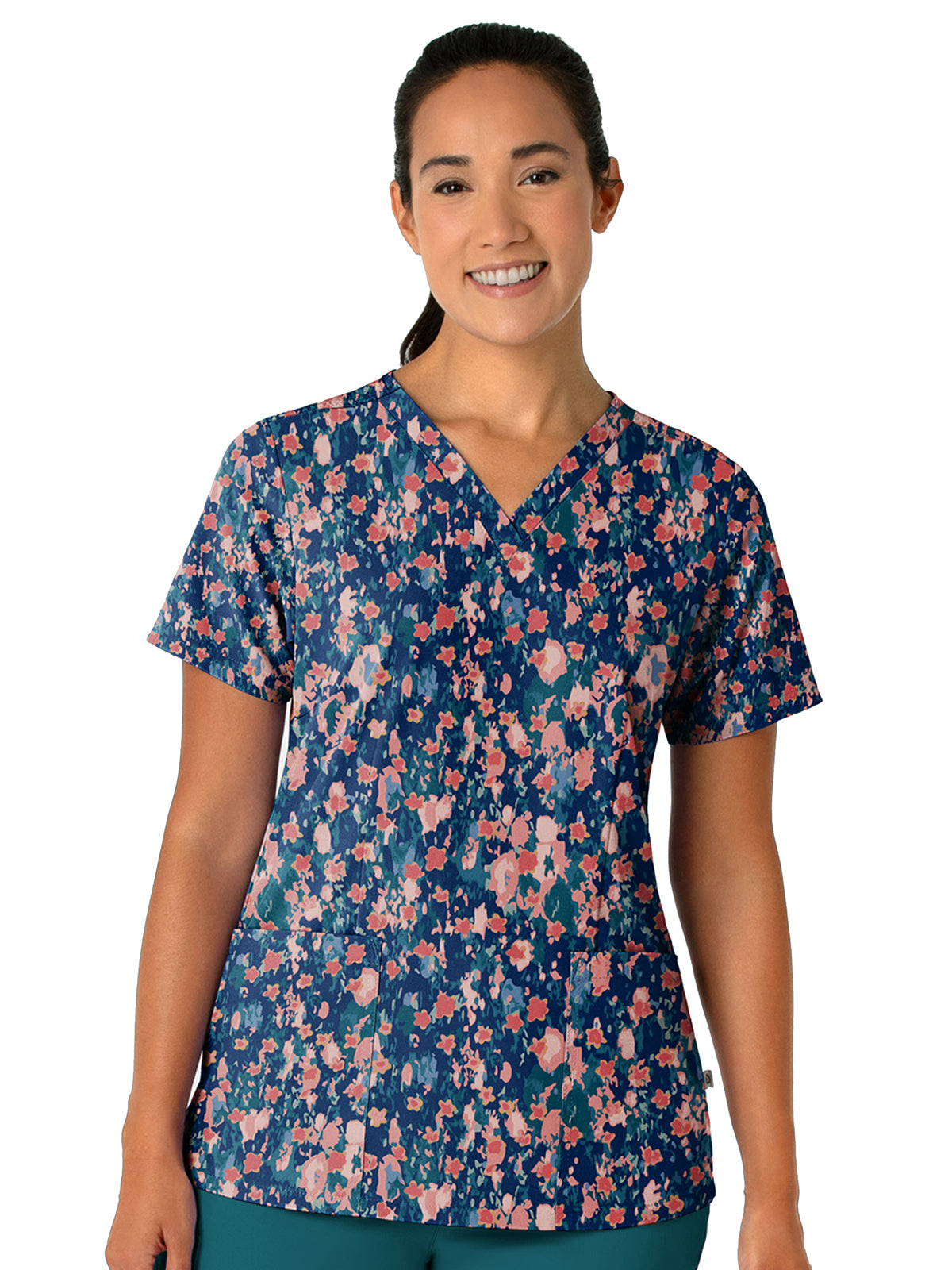 The Wink Fitted 3-Pocket V-Neck Print Scrub Top is the combination of style, comfort, and durability that you’ve come to expect from Wink. This scrub top features a comfortable and breathable v-neck collar, a modern tailored-to-you fit, and soft-to-the-touch four-way stretch fabric that keeps you comfortable and moving for even the most active shifts, plus the hem vents offer added ease of movement and keep your top from riding up while you move.