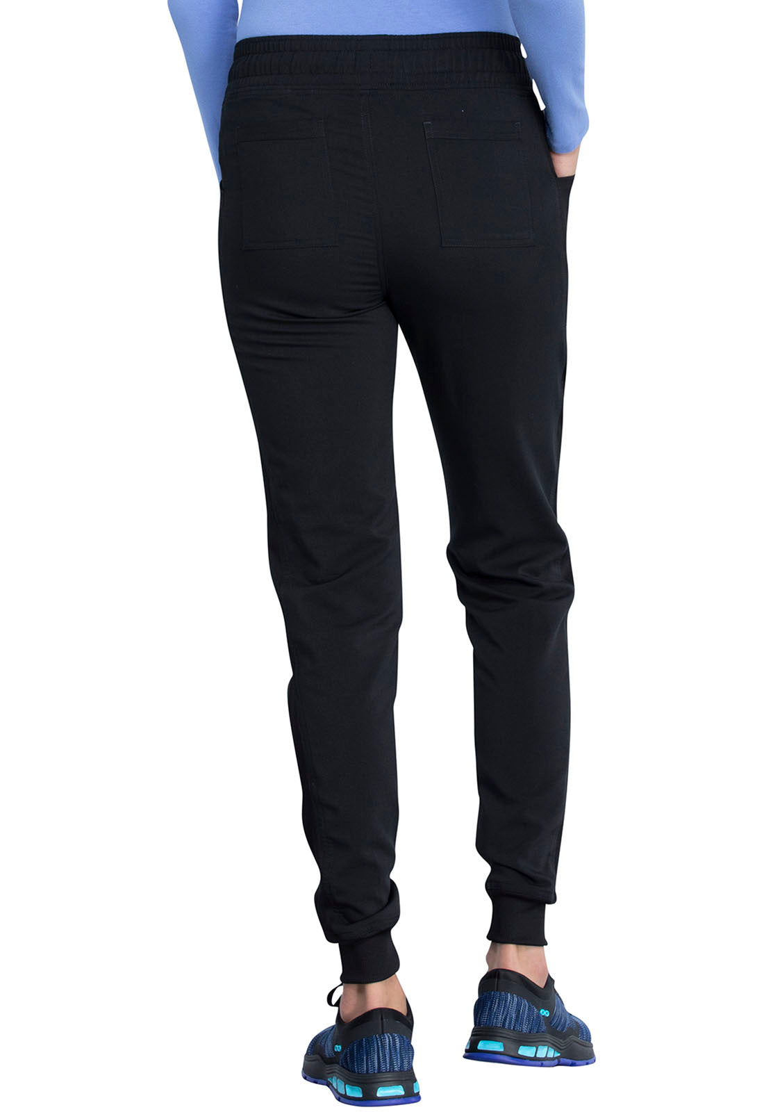This contemporary, mid-rise jogger has an enclosed elastic waistband and interior drawstring for a sleek, comfortable fit. It allows for effortless movement with stretch side panels and contoured seaming—the right balance in your workday.