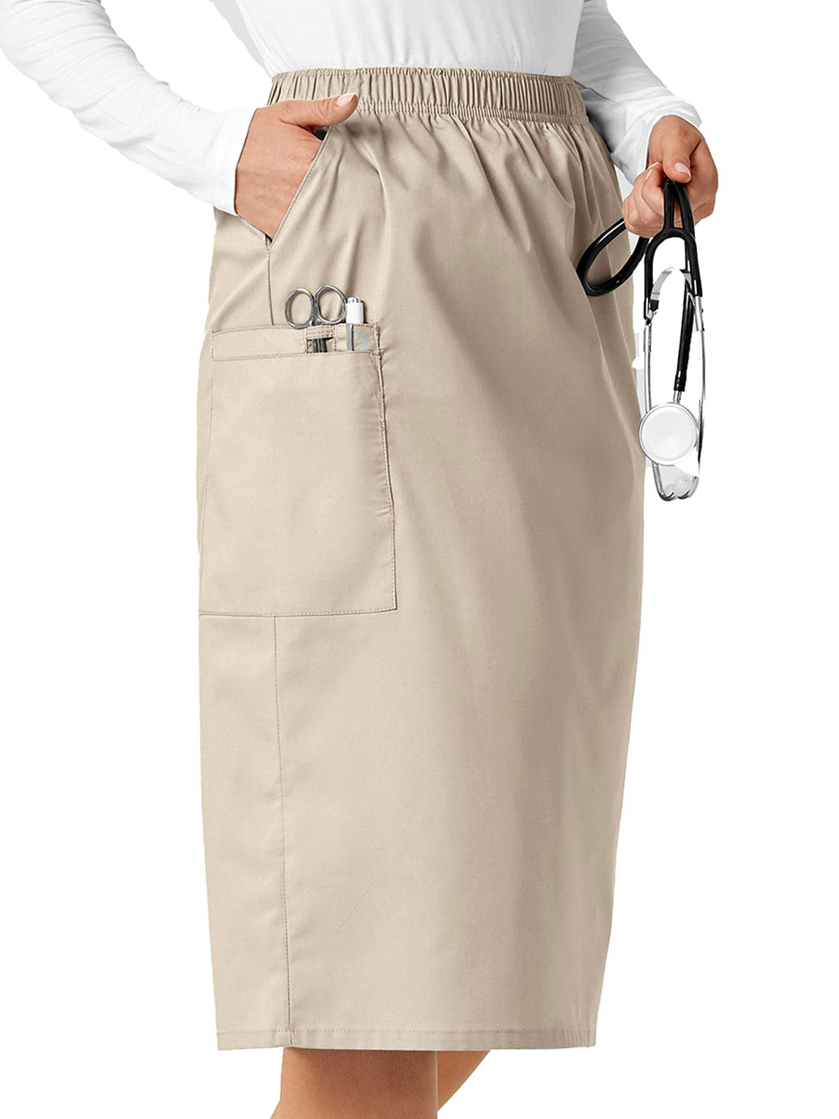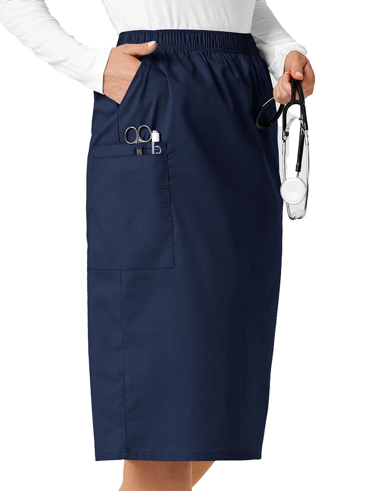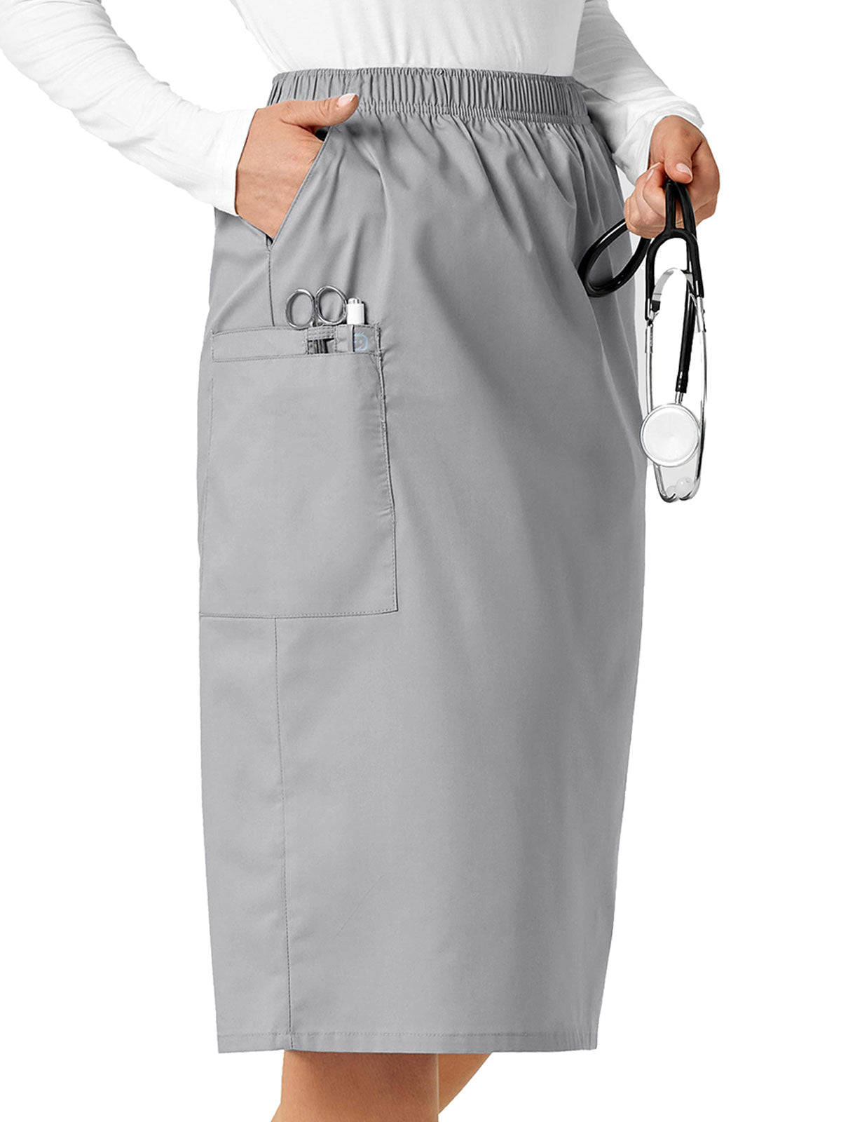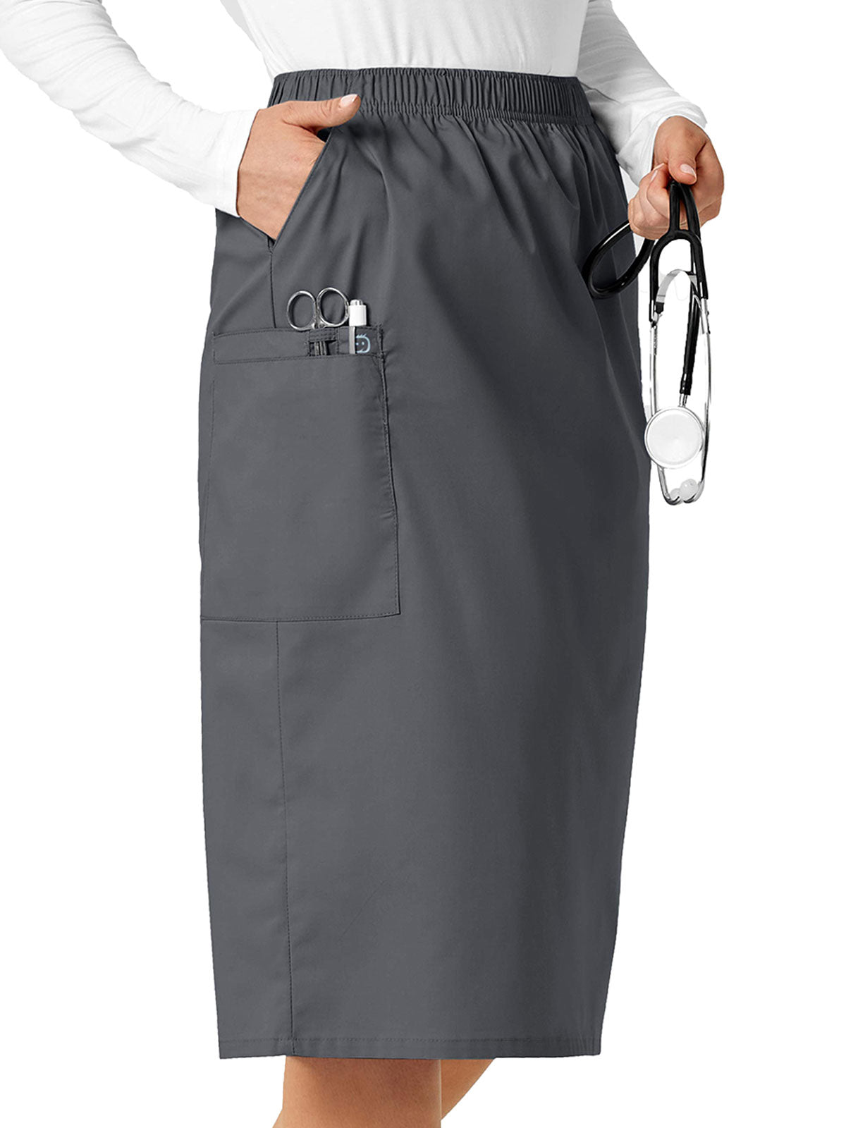 A new alternative to your scrub pants! Introducing the WonderWORK Pull on Cargo Skirt! This scrub skirt includes a full elastic waistband