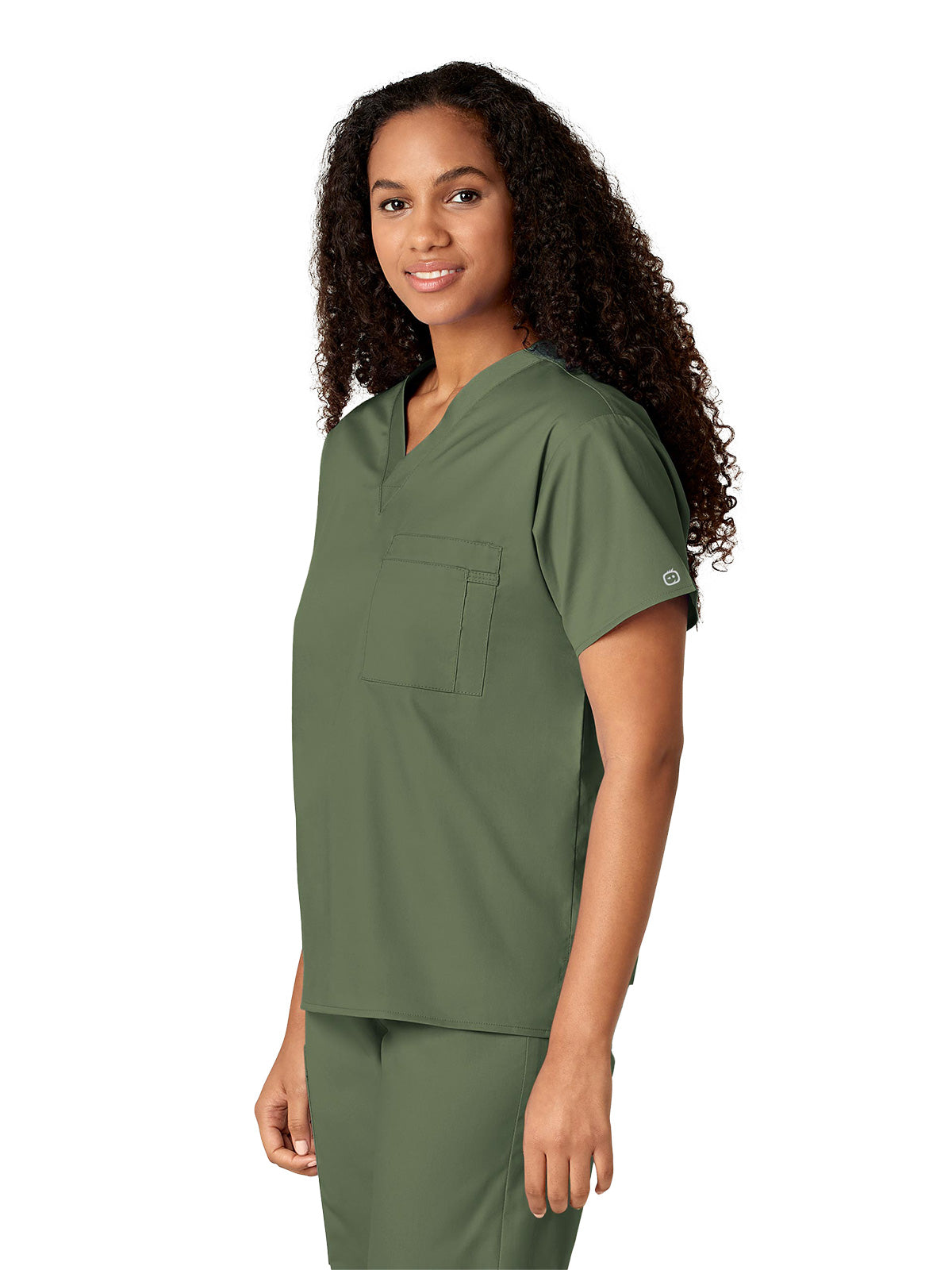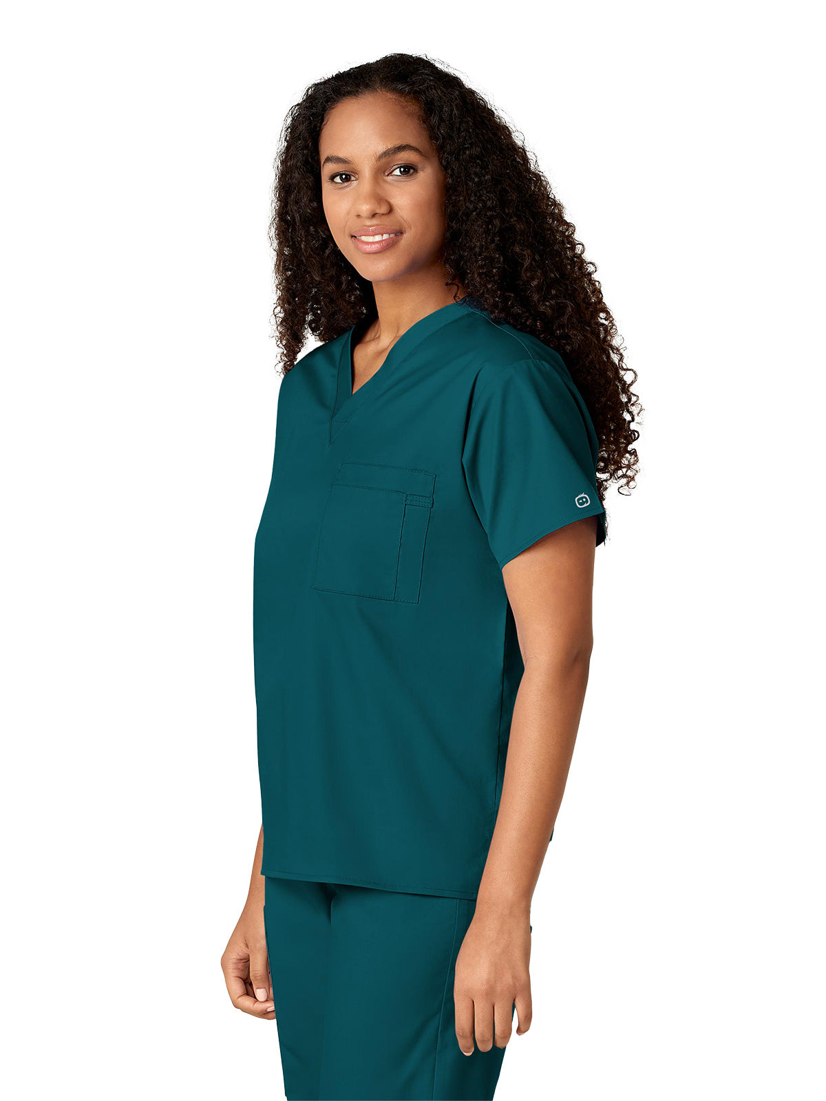 WonderWORK's Unisex V-Neck top is designed to modernize the fit of one of the most popular styles. Special motion stretch and high thread-count fabric provide smooth, durable characteristics found in most expensive garments. Redesigned with the wearer in mind, this unisex style eliminates the unflattering 'boxy' look of scrubs and redefines it with a comfortable, professional look at an unbeatable price.
