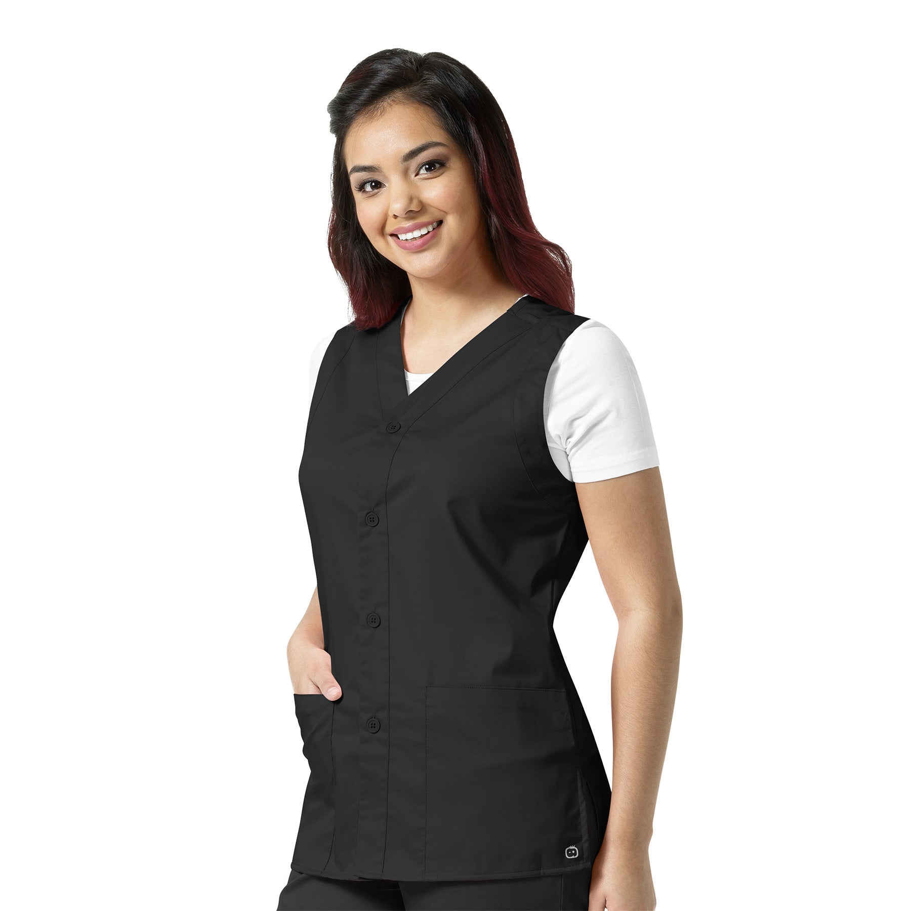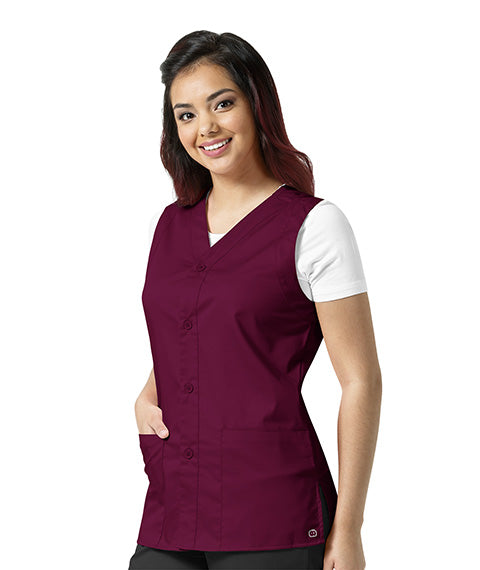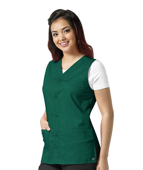 The WonderWink WonderWORK Volunteer Unisex Vest is a perfect uniform for the hospital volunteer! It's 65% polyester/ 35% cotton with active twill gives you the stretch that you have come to know and love from WonderWORK! Features include front buttons, two lower patch pockets, side vents and an ID badge loop.