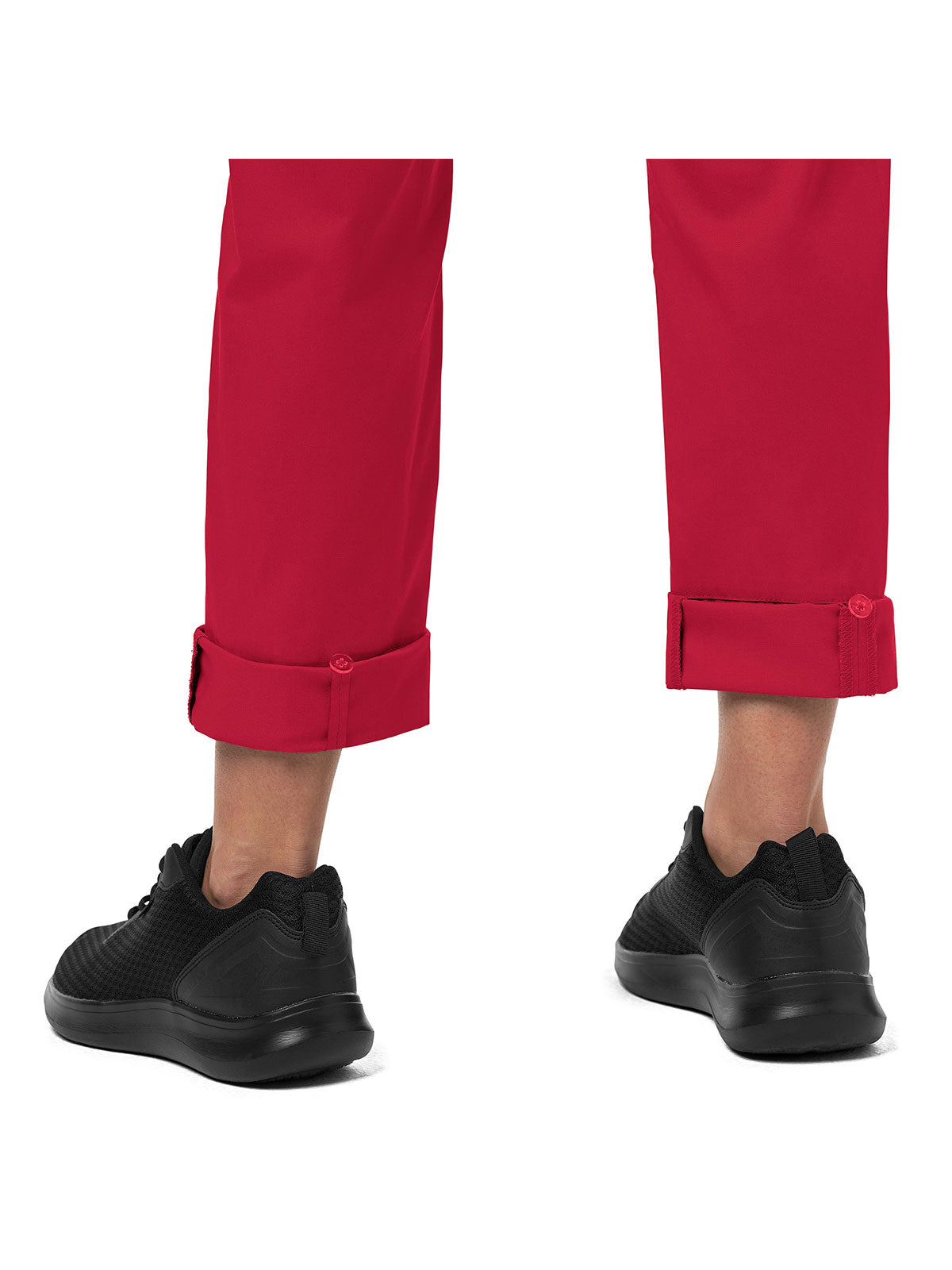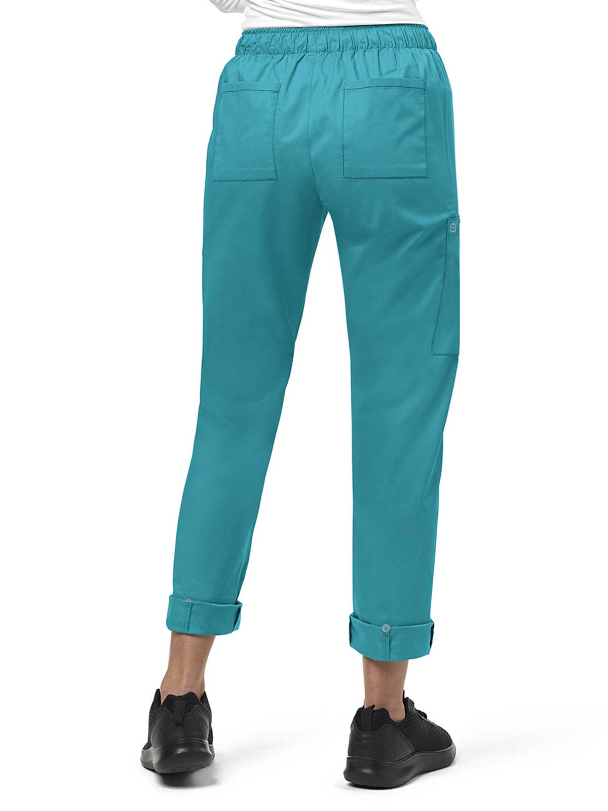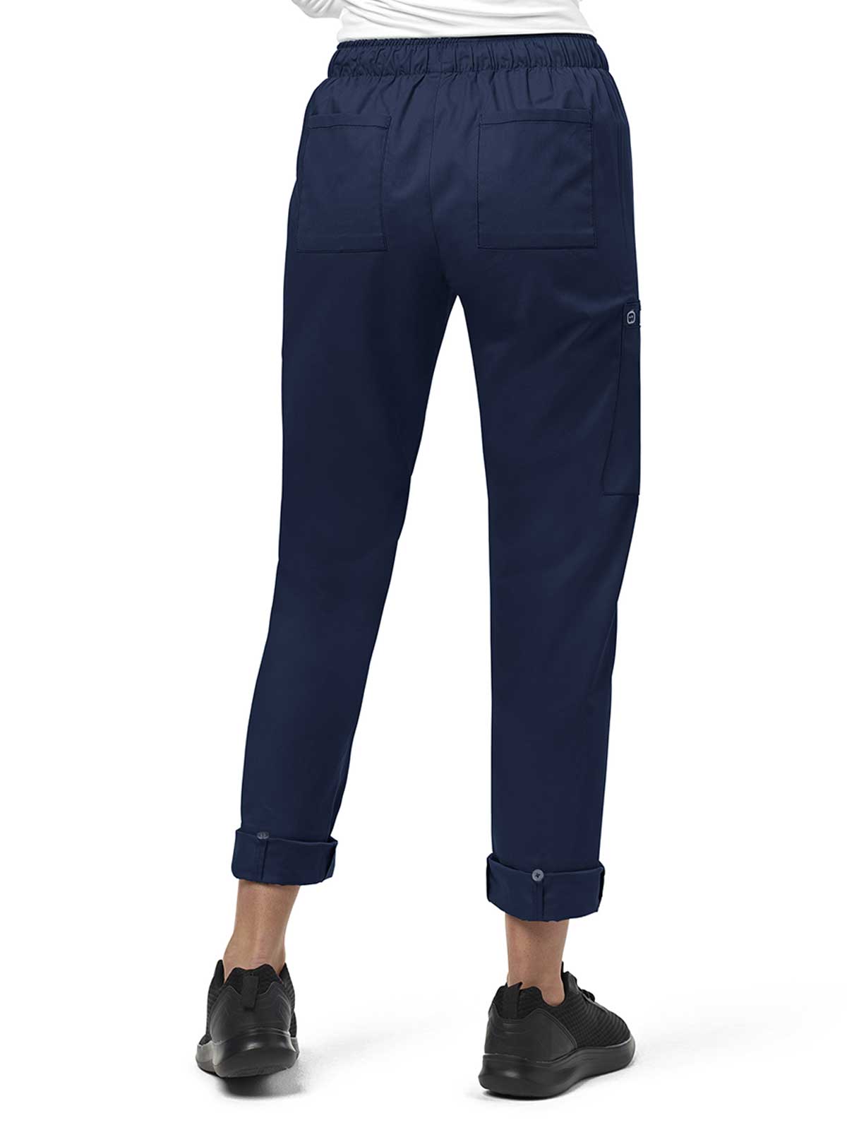 If you're looking for versatility, the WonderWORK Women's Convertible Slim Leg Cargo Scrub Pant is for you. These comfortable, durable scrub pants feature a button and loop at the hem that allows them to be worn cuffed to ankle length.