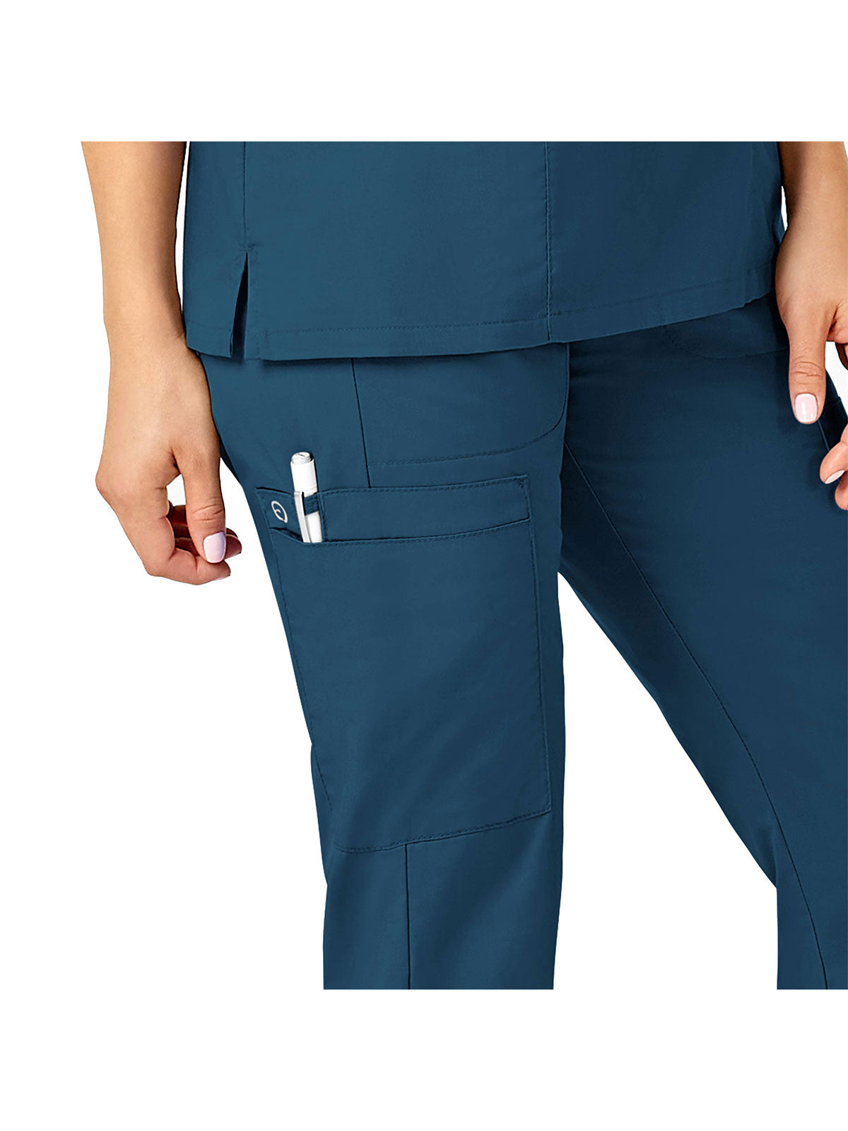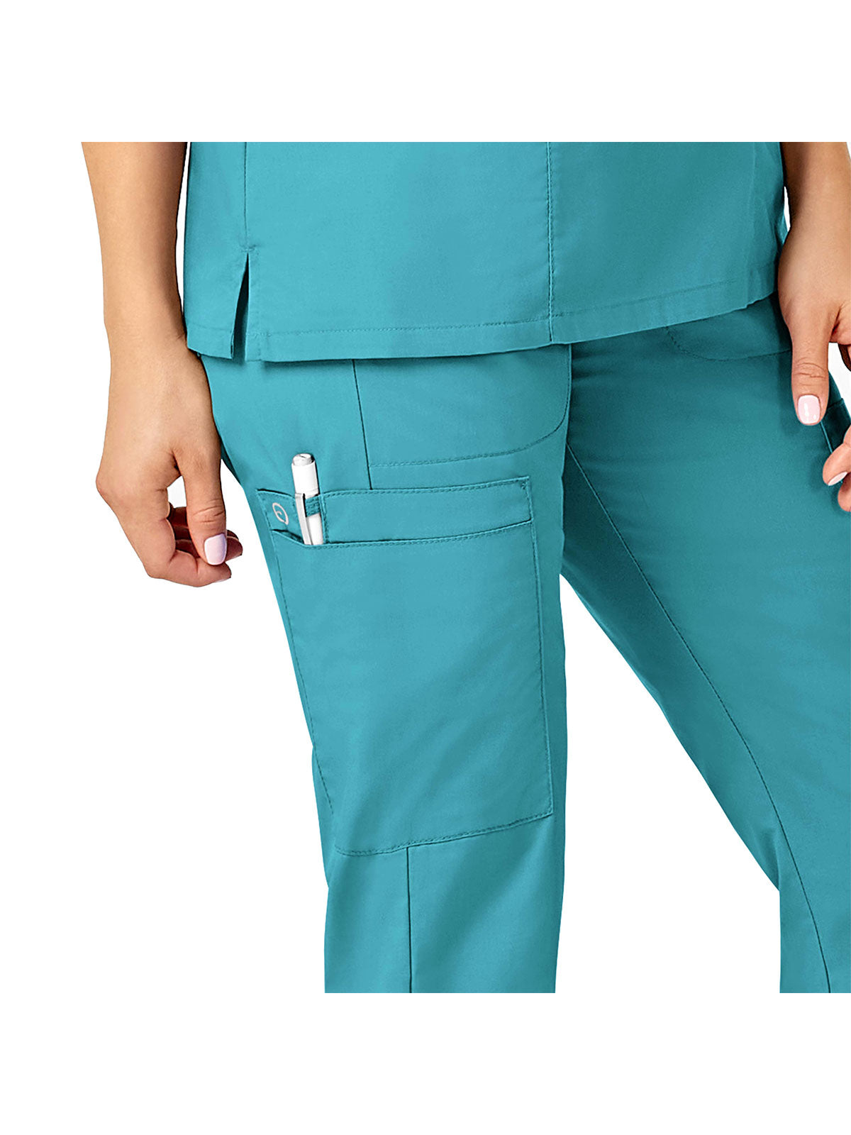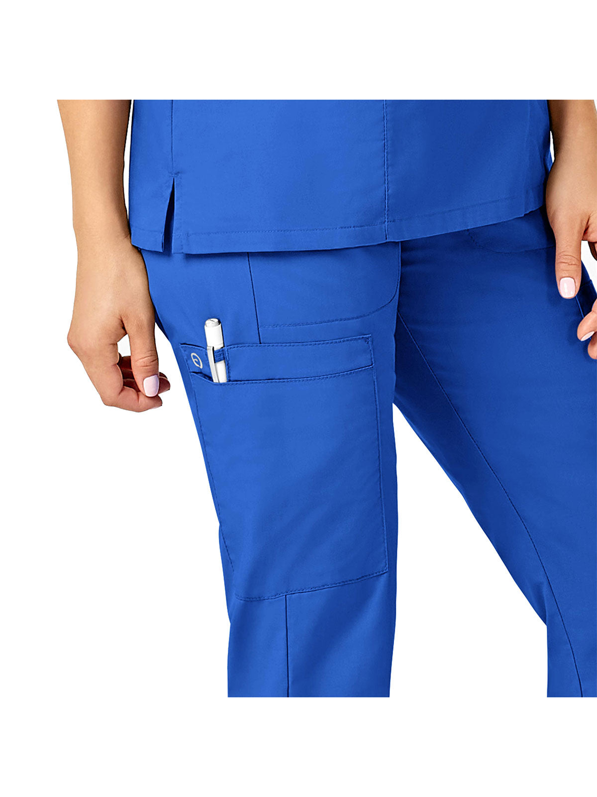 If you're looking for versatility, the WonderWORK Women's Convertible Slim Leg Cargo Scrub Pant is for you. These comfortable, durable scrub pants feature a button and loop at the hem that allows them to be worn cuffed to ankle length.