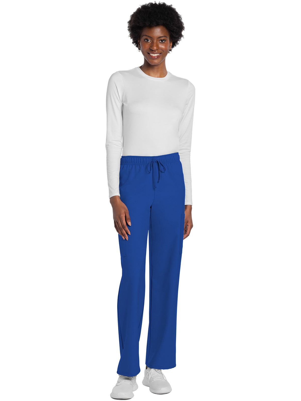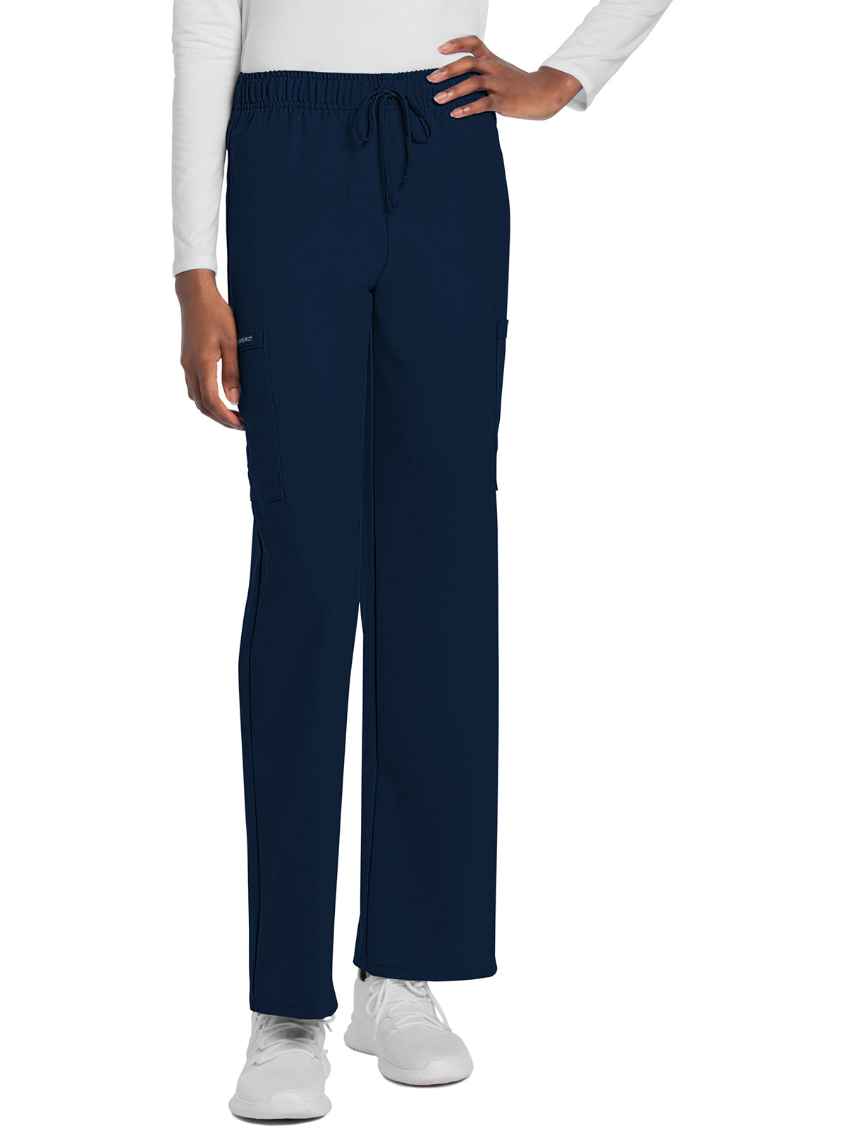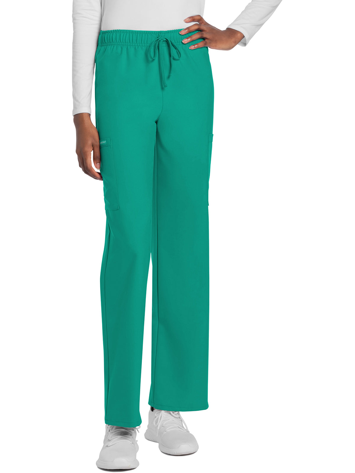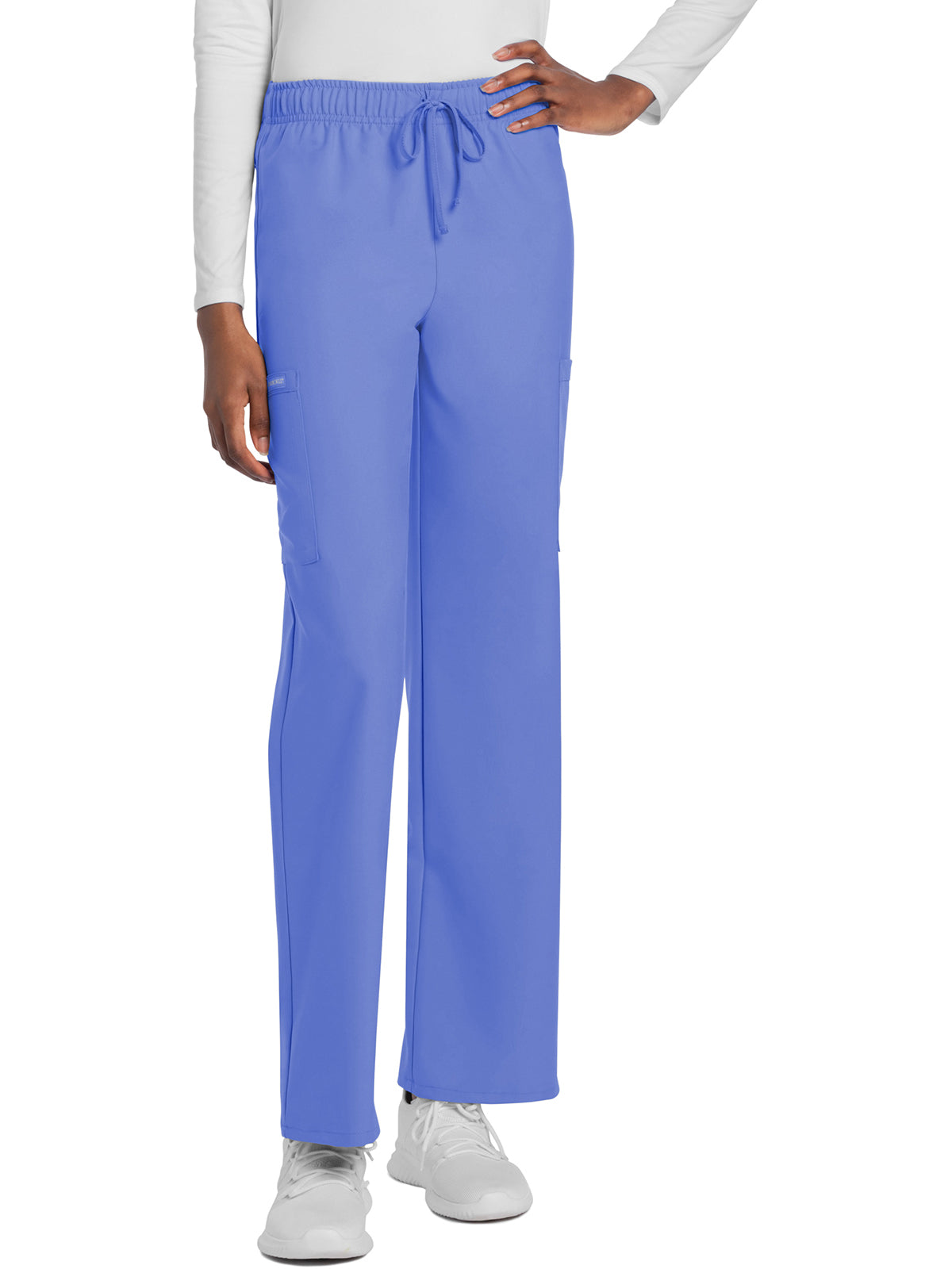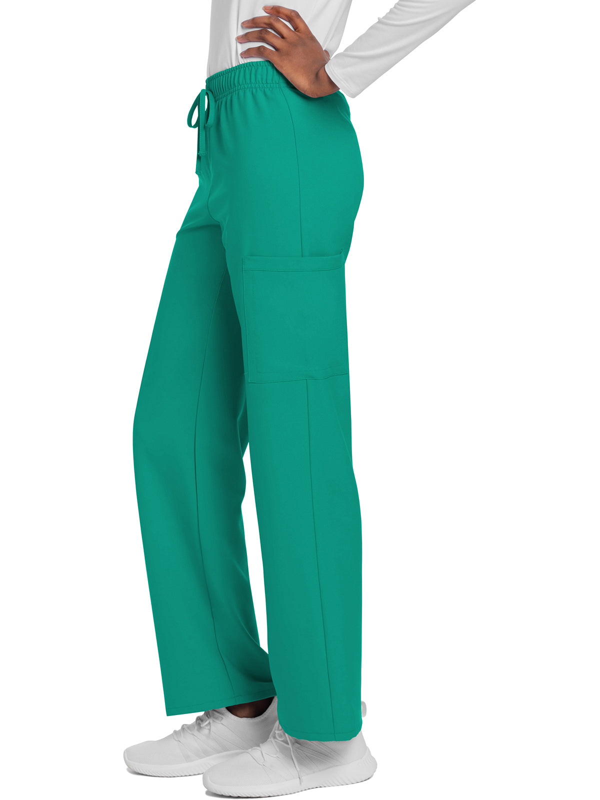 Reliable and comfortable, this Unisex fit drawstring pant has an elastic-reinforced waistband and drawstring. There are three pockets to store work essentials: two cargo patch pockets and one back patch pocket. Reverse hem trim on all pockets. Decorative tonal topstitching for added detailing. This scrub pant offers genderless classic styling. Straight leg, 19 1/2" opening. Inseam: 31"
