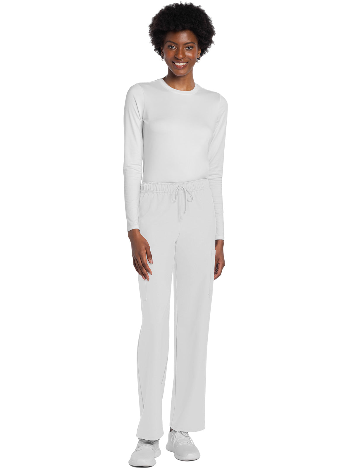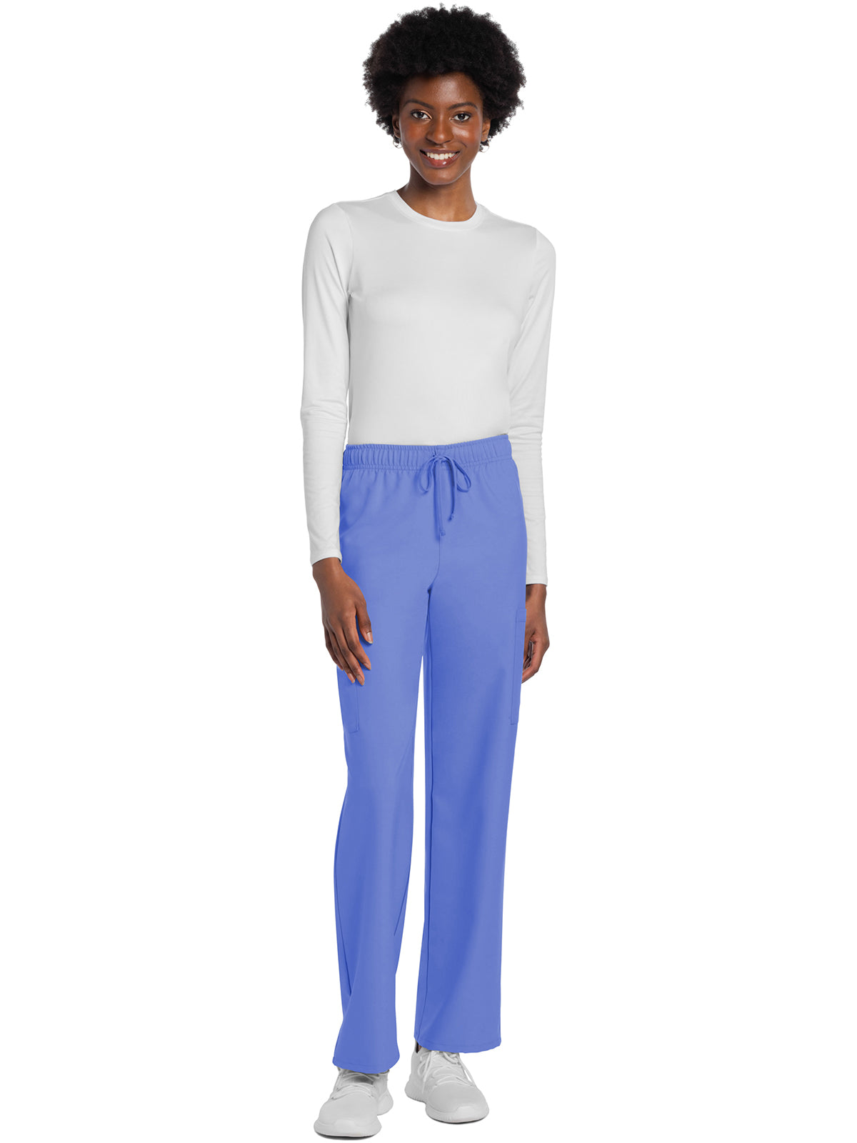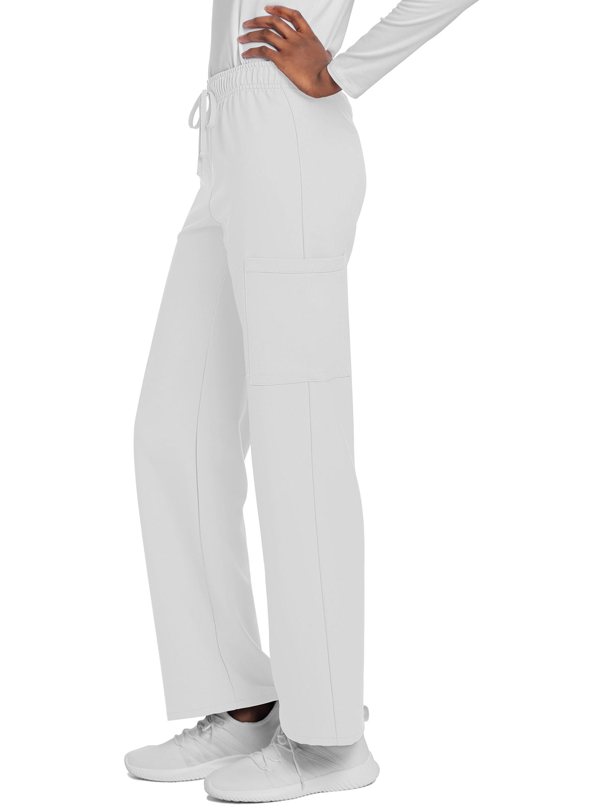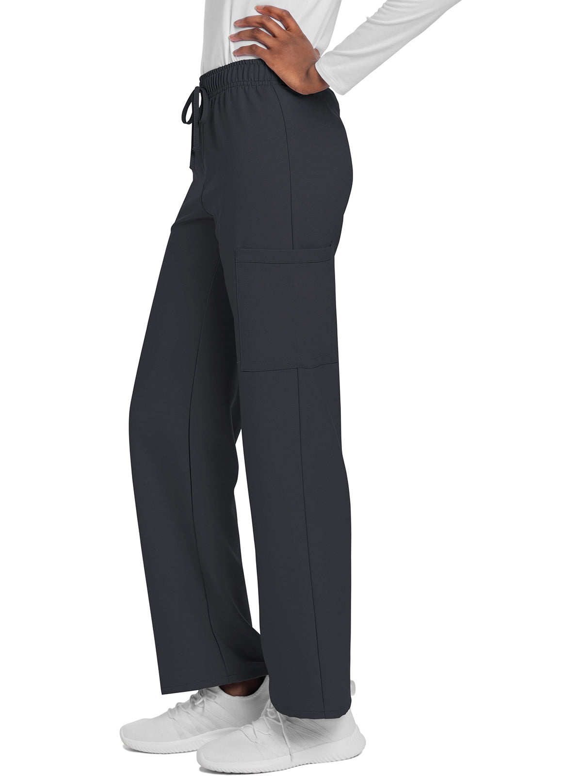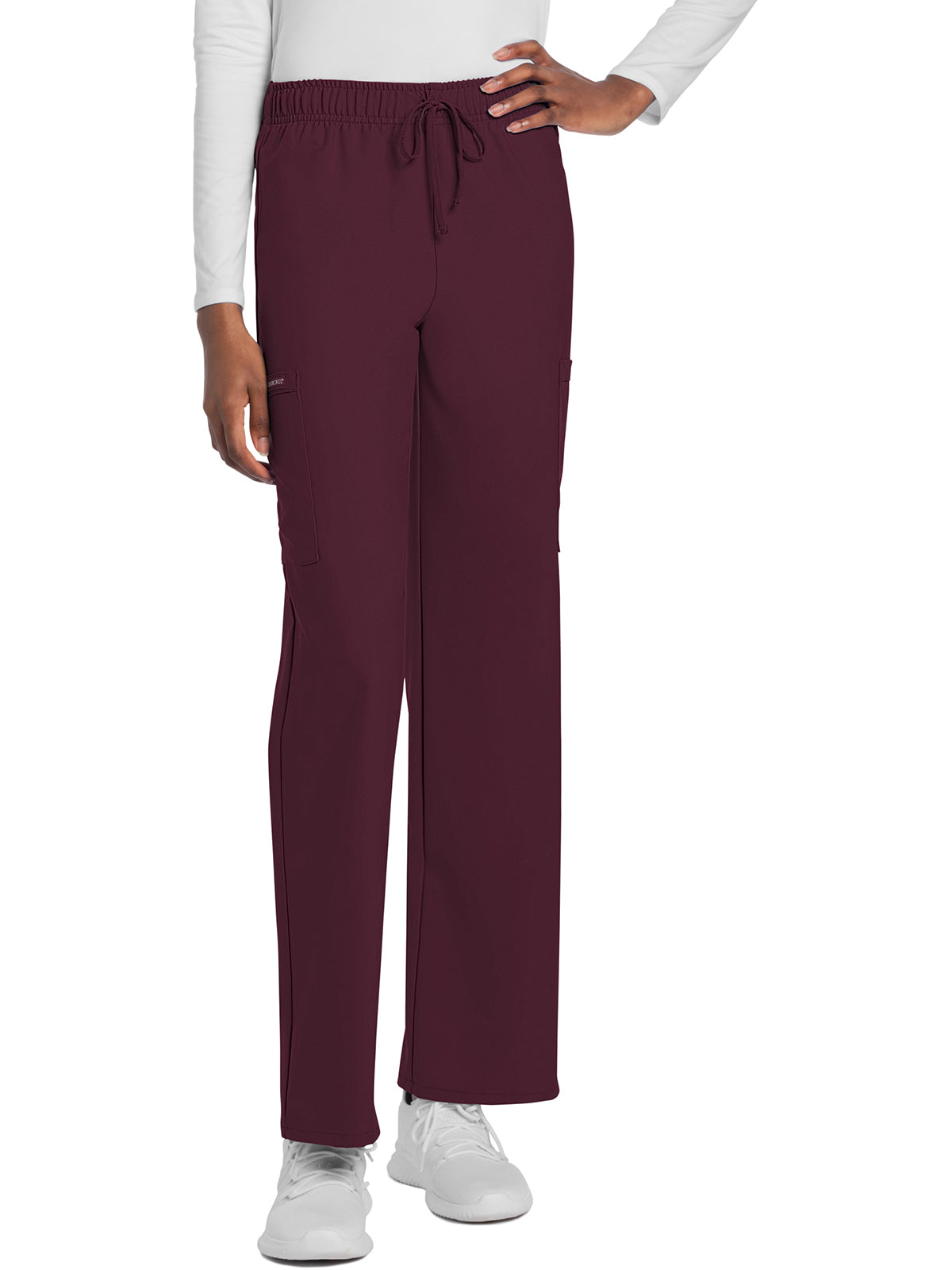 Reliable and comfortable, this Unisex fit drawstring pant has an elastic-reinforced waistband and drawstring. There are three pockets to store work essentials: two cargo patch pockets and one back patch pocket. Reverse hem trim on all pockets. Decorative tonal topstitching for added detailing. This scrub pant offers genderless classic styling. Straight leg, 19 1/2" opening. Inseam: 31"